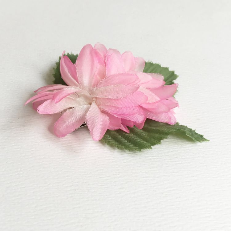This is a set of five handmade hair clips with different arrangement of fake flowers, leaves and ribbon.