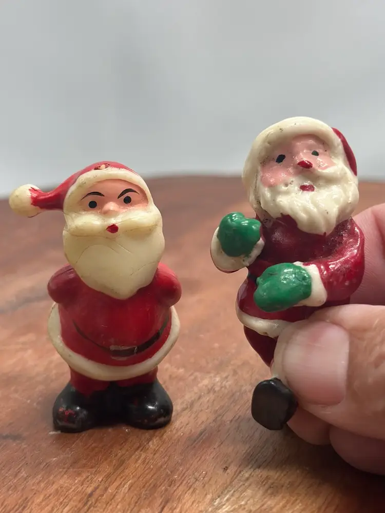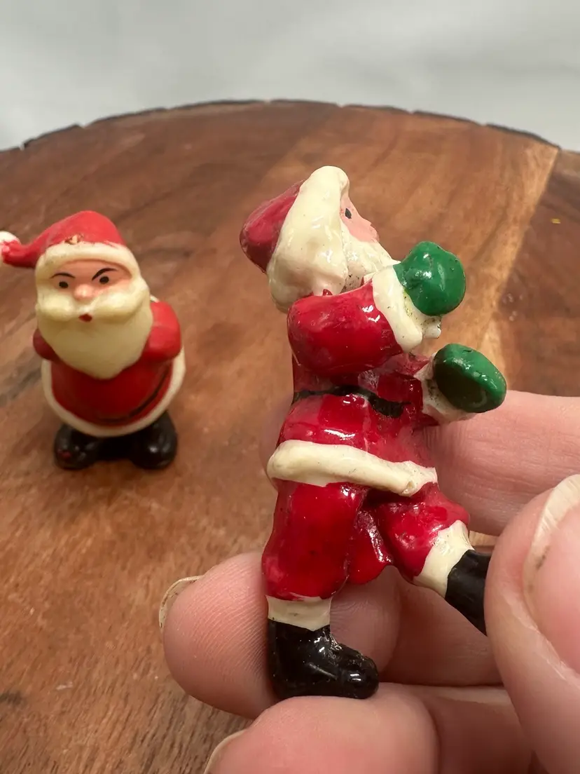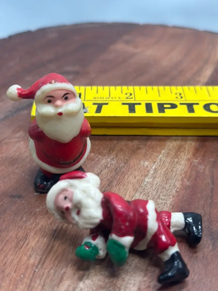 Likely cake toppers would work Santa laying down does not stand freely No damage Slight paint wear due to age Smoke free seller