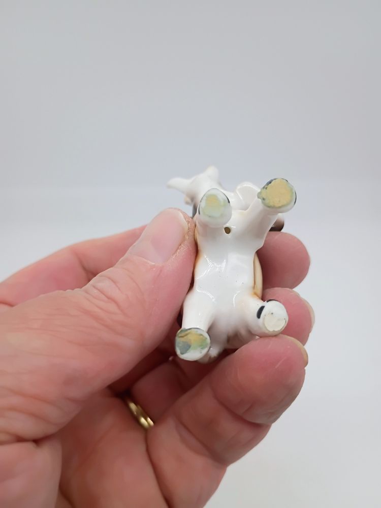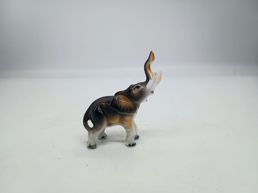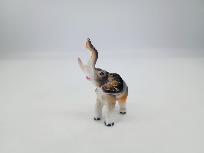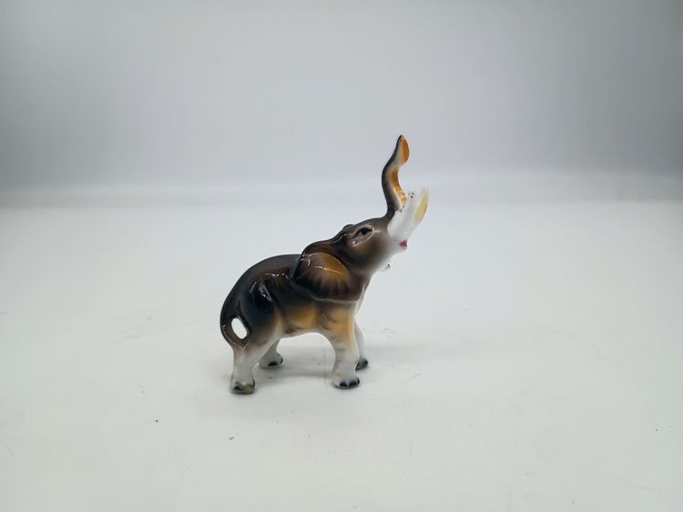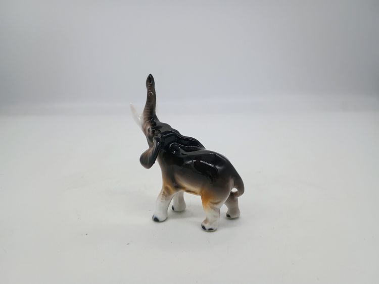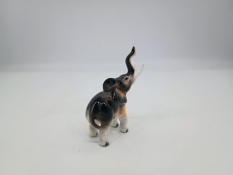 Vintage Miniature Bone China Elephant Figurine Trunk Up For Luck. This is 2.25 inches tall 2 inches long and 1.25 inches wide. Has some paper residue on bottoms of feet. No Chips or Cracks no flea bites, Trunk and tusks are intact, Excellent used condition. Ships USPS domestically and UPS internationally