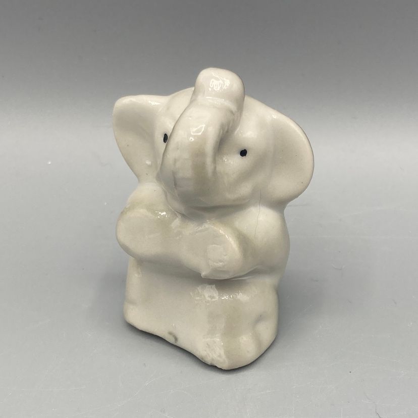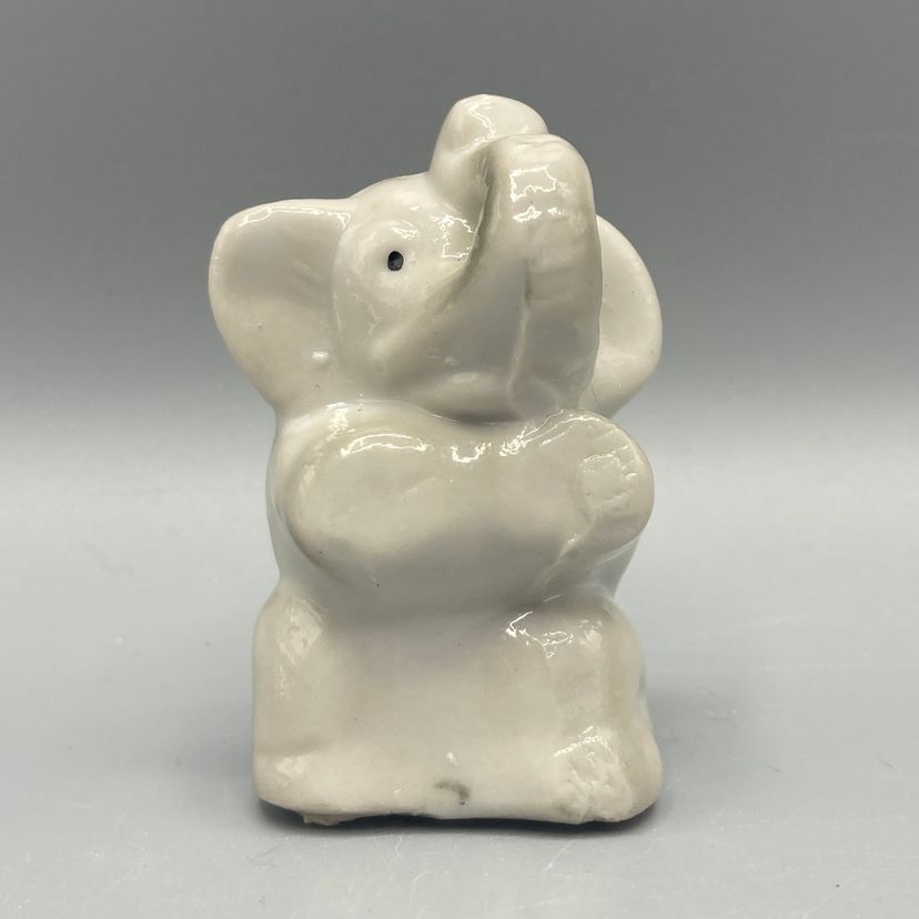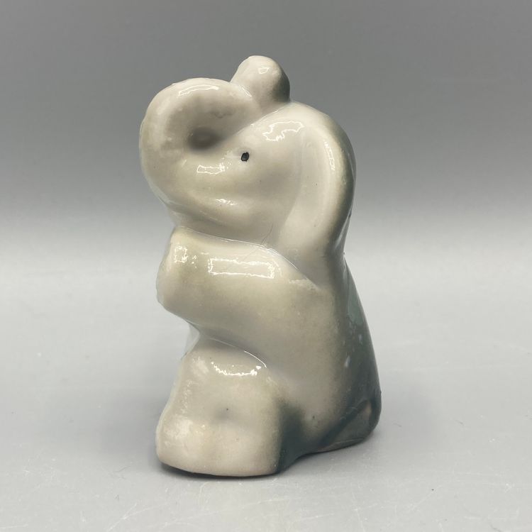 This elephant is in good condition. It measures approximately 2 1/2" tall x 1 3/4" wide x 1 1/2" deep.