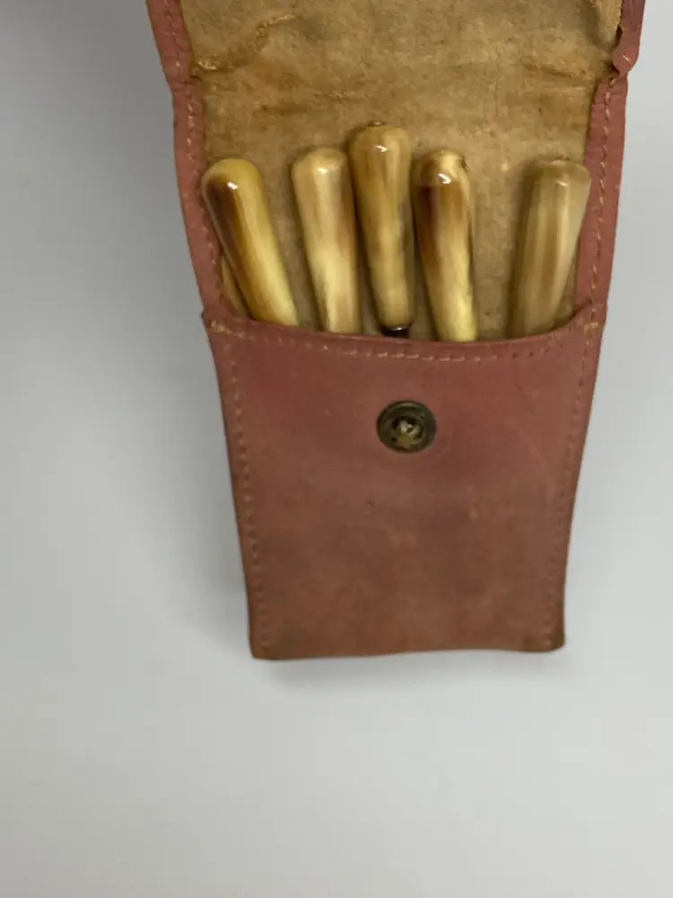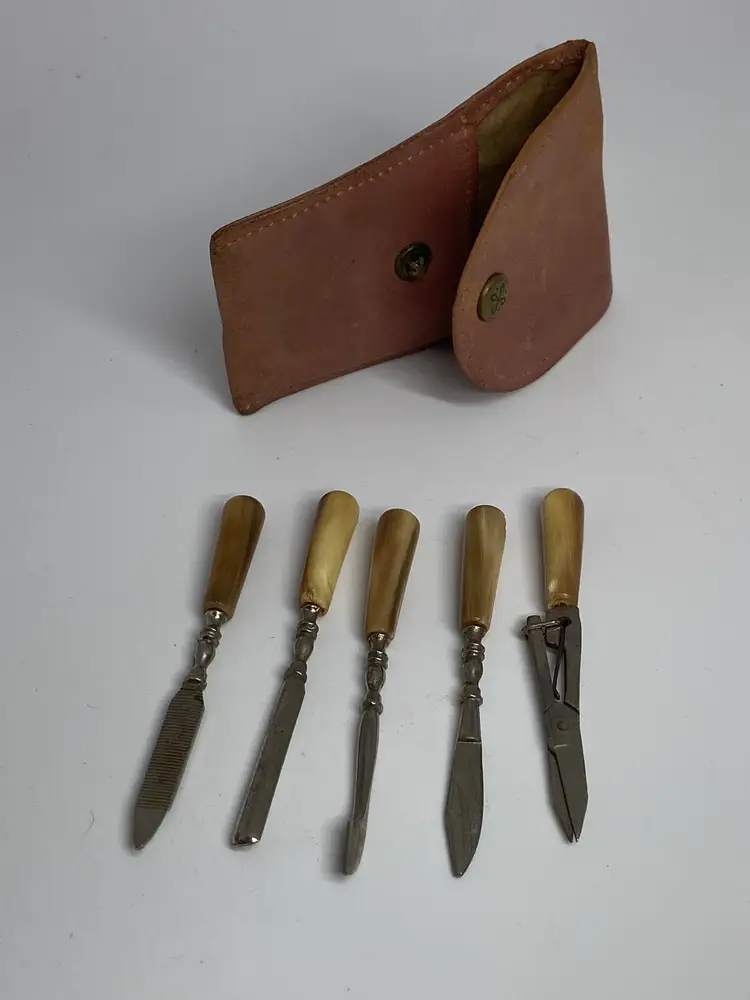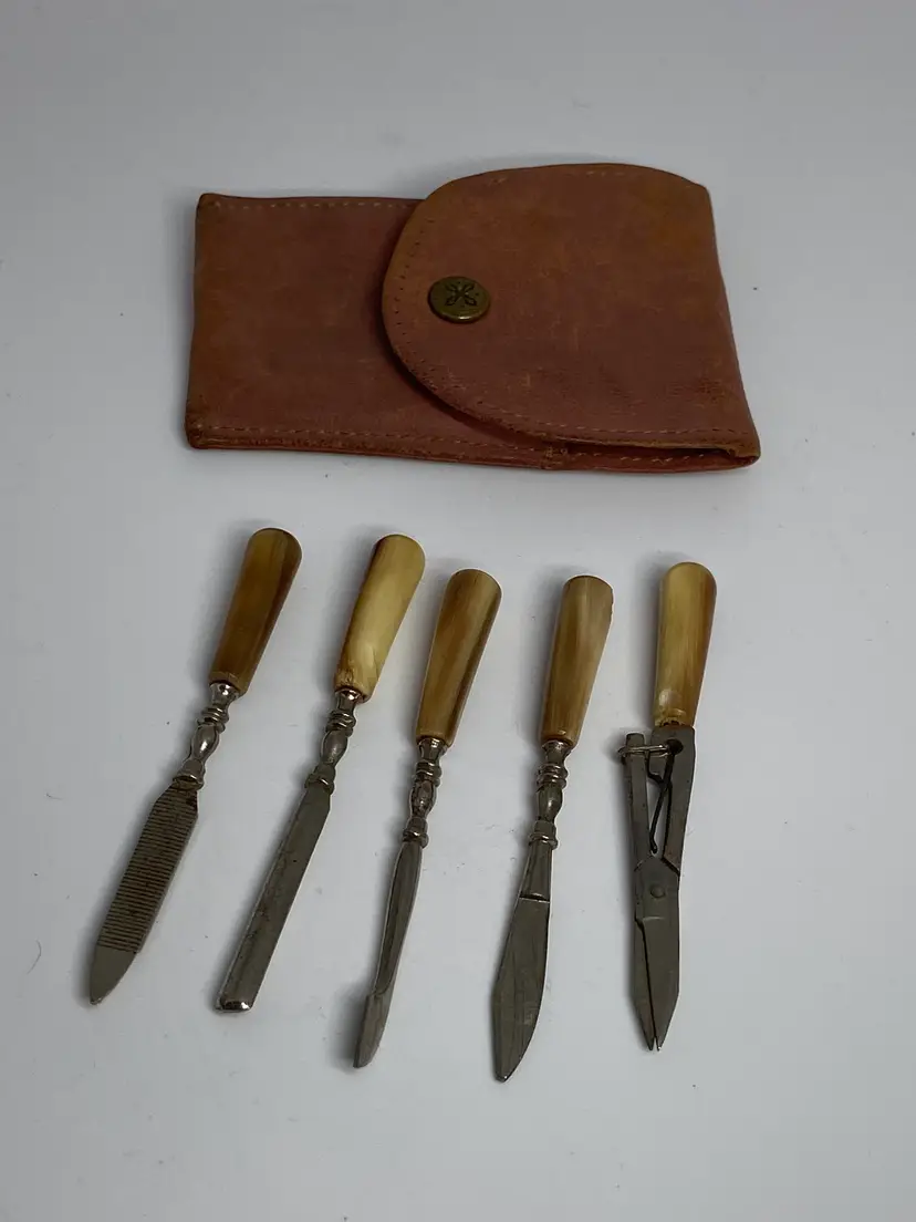 Vintage Miniature Manicure Tools in a Leather Case, 3"