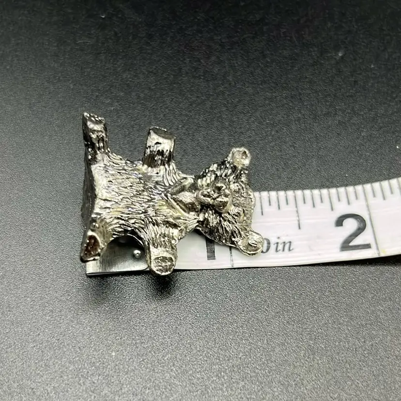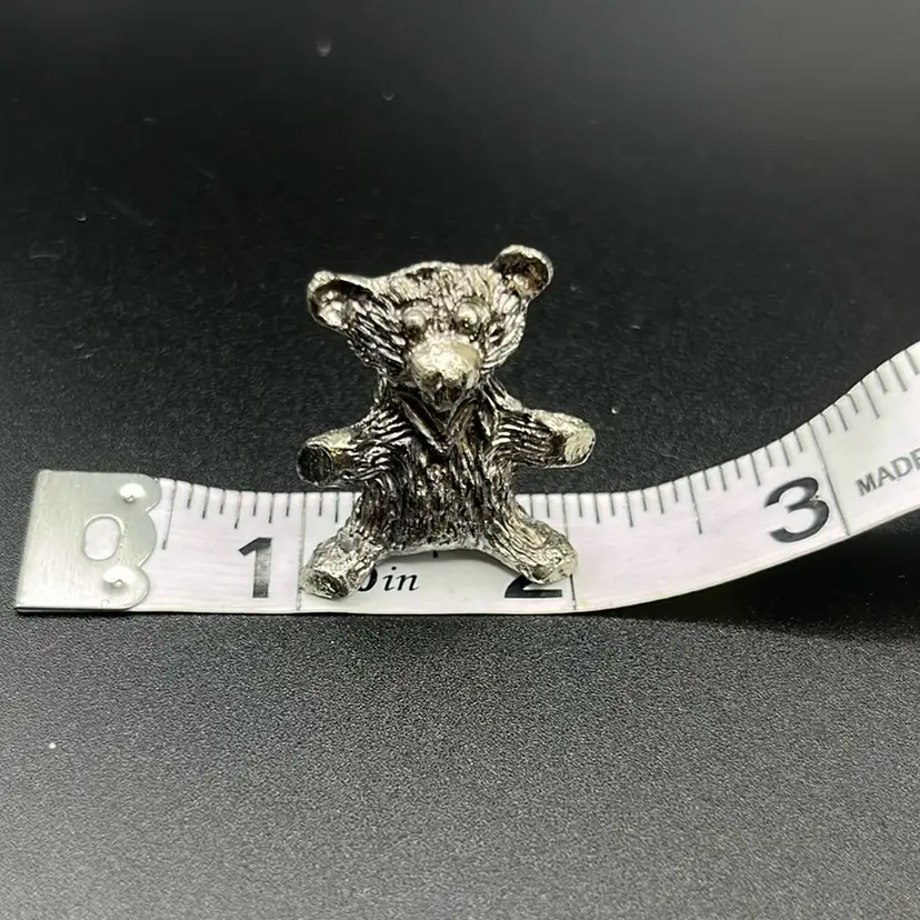 Vintage miniature pewter teddy bea with bandana. 1 inch wide. 1.25 inches tall.