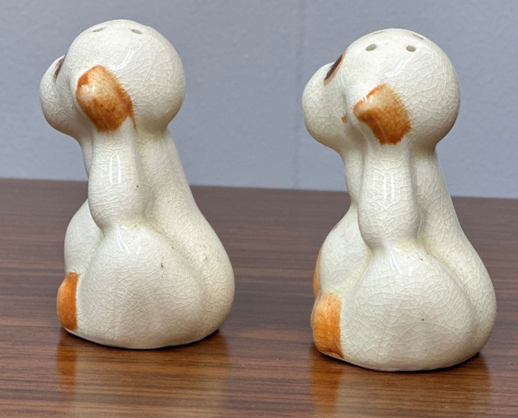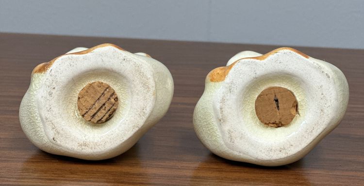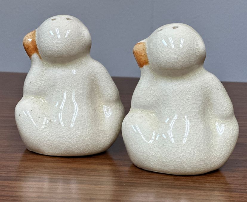 Vintage Salt & Pepper Shaker Set Pair of Monkeys Ceramic Cork Plugs 2 3/4" Tall x 2 1/2" Wide