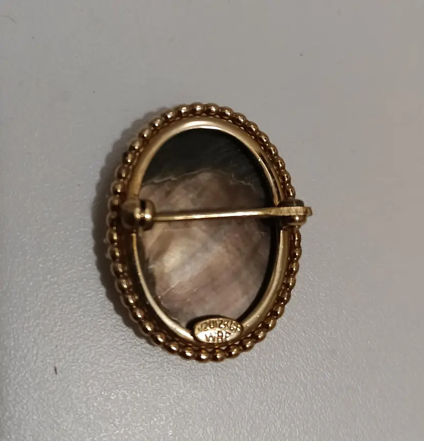 Vintage Mother Of Pearl Cameo Brooch; Marked 1/20 12K GF WRF; Very Pretty and in Very Fine Condition for its Age! Just over 1" Long x .75" W