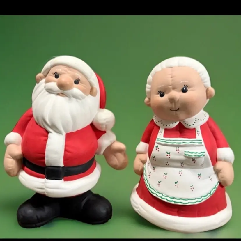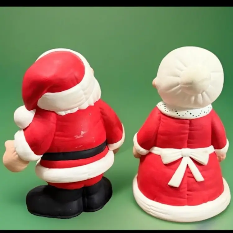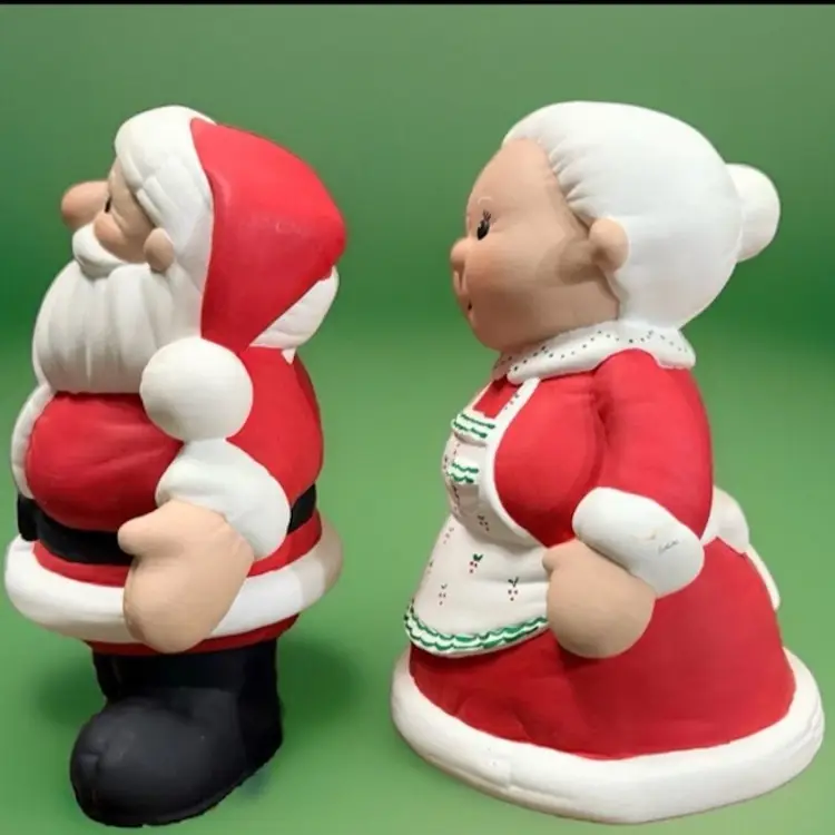 Bring a touch of vintage charm to your Christmas decor with this delightful set of Mr. and Mrs. Santa Claus figurines. Crafted from ceramic and porcelain, these hand-painted figures stand at 8” inches tall and are perfect for the holiday season.