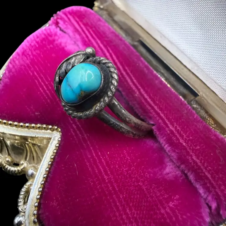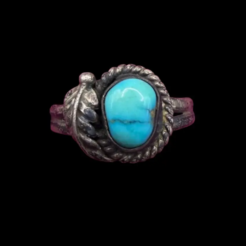 vintage Native American Navajo sterling silver ring featuring a turquoise stone and a foliate design- Size 9