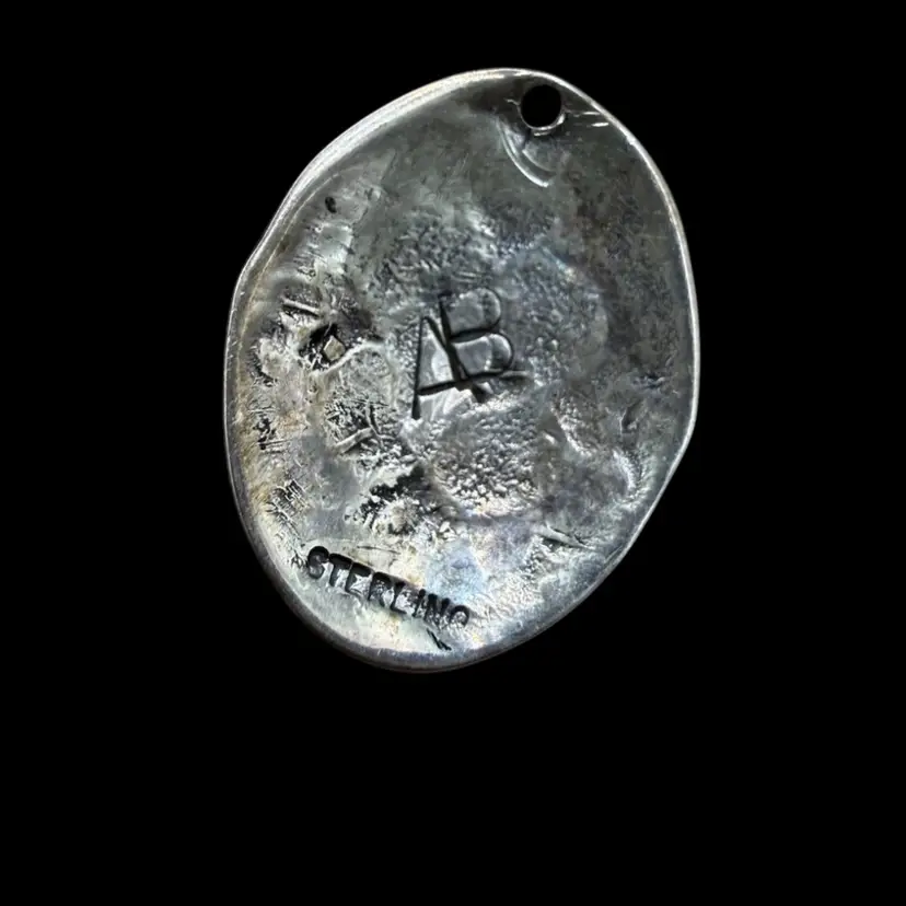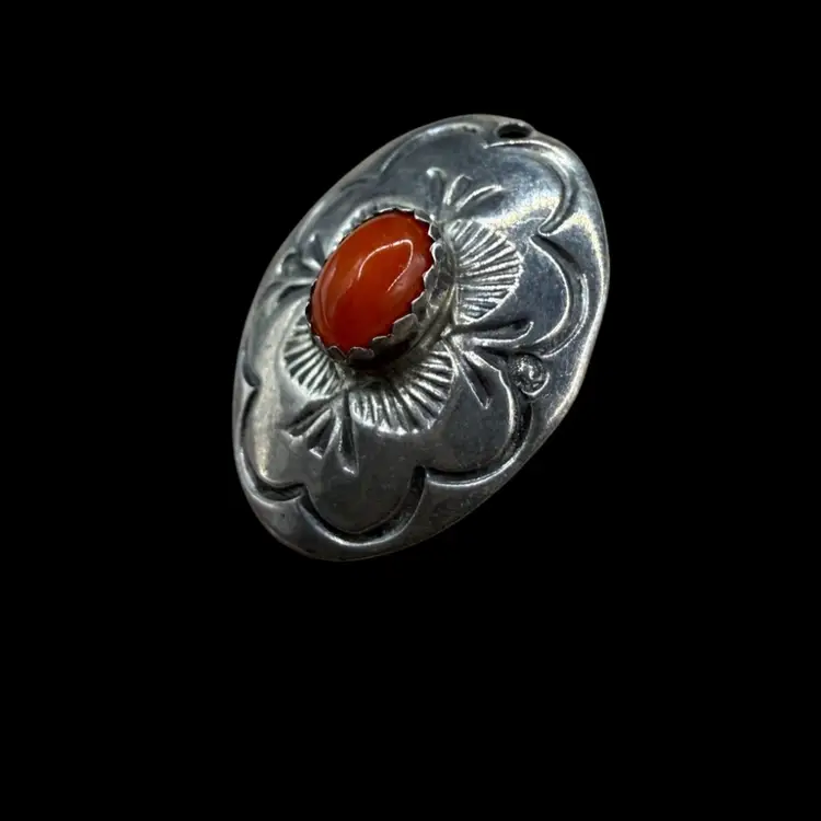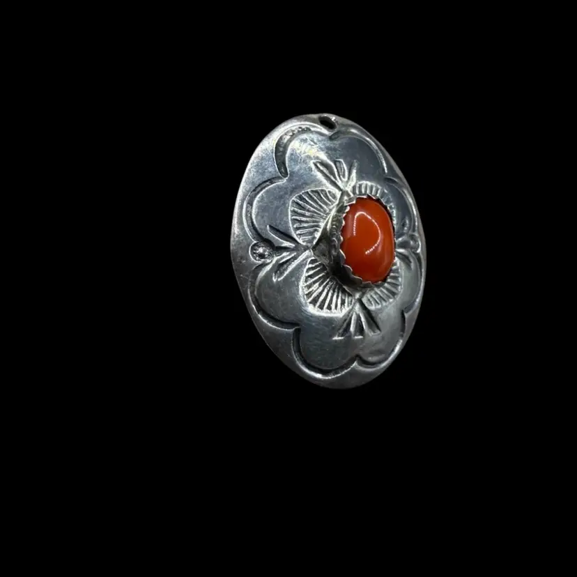 Vintage Native Signed Sterling Silver And Coral Pendent