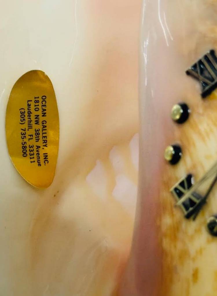 Operates on 1 AAA Battery. Made by Ocean Galleries in Florida in the 1980's The Clock keeps time accurately No repairs, No Chips and No Cracks Excellent condition and one of a kind