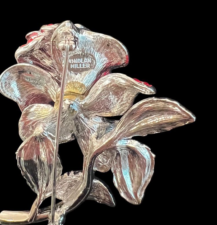 Vintage Nolan Miller Glamour Collection Nancy Red Rose SilverTone Brooch #A-1
