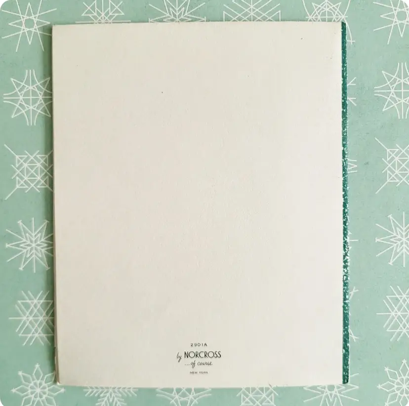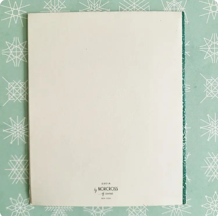 Amazing vintage Norcross midcentury Christmas Santa with glasses card. Card has been used/signed. Measures 4 x 4.75 in.