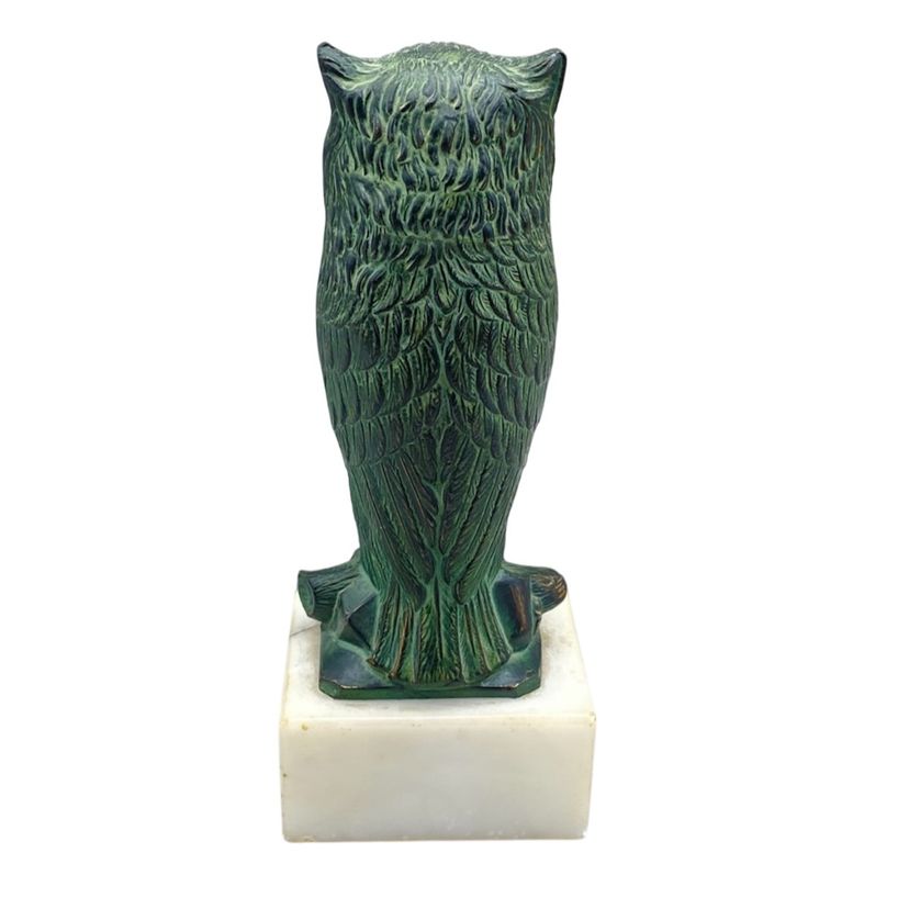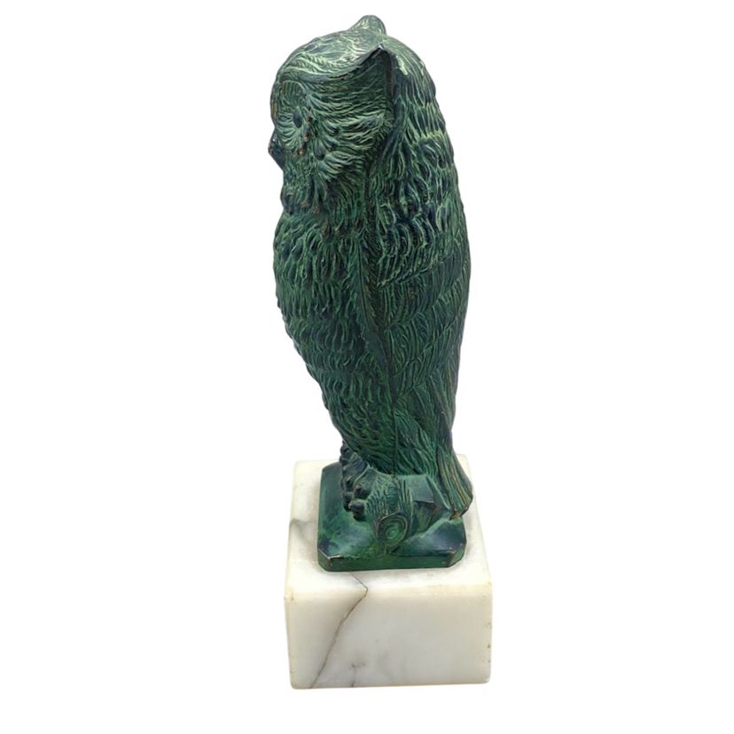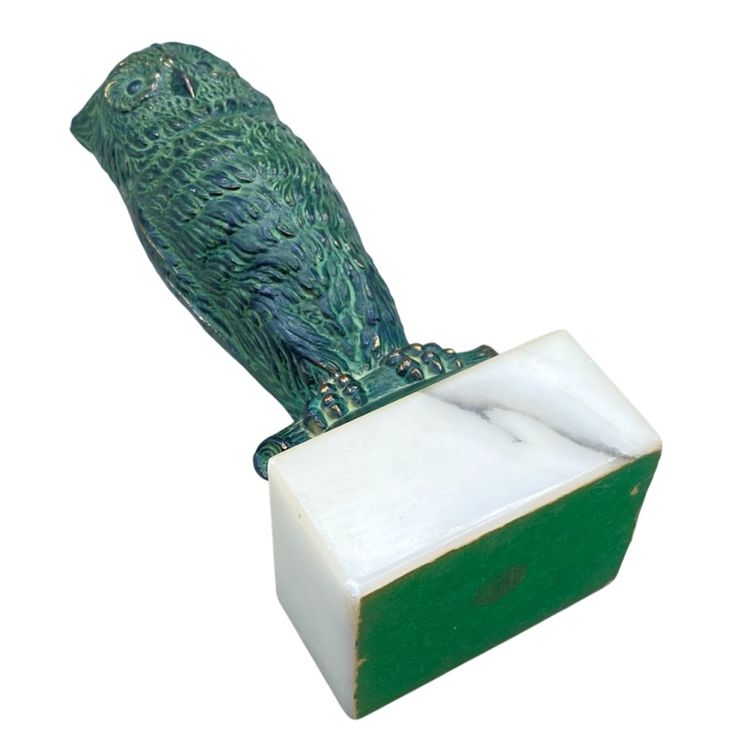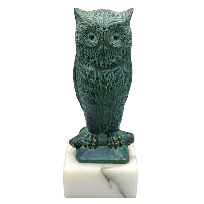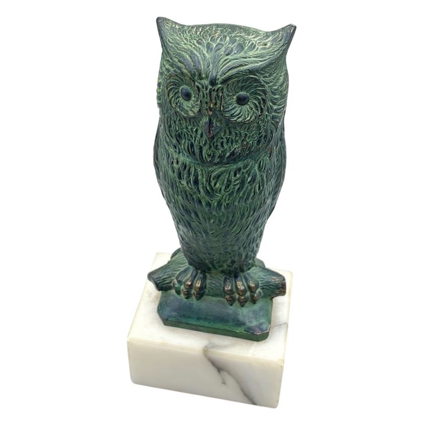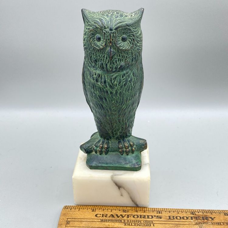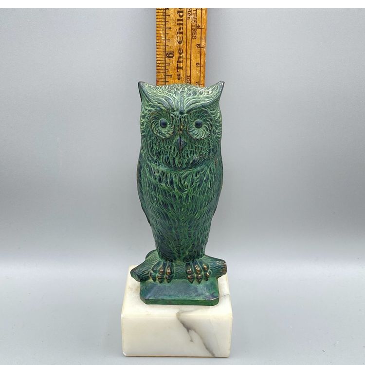 Vintage Green Owl Metal On Marble Base Decor Retro Boho Heavy