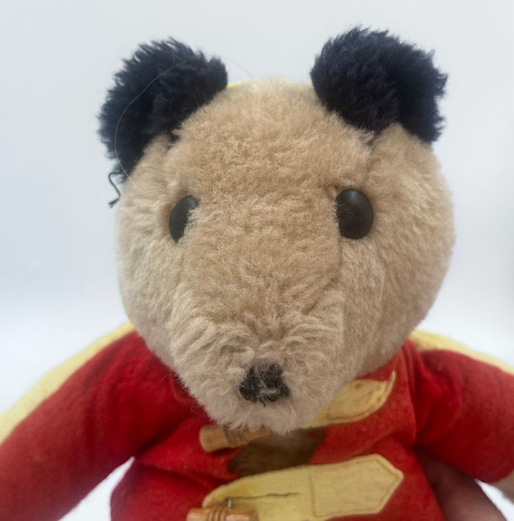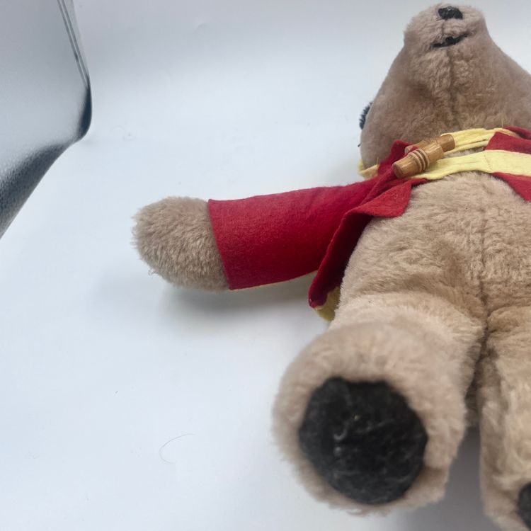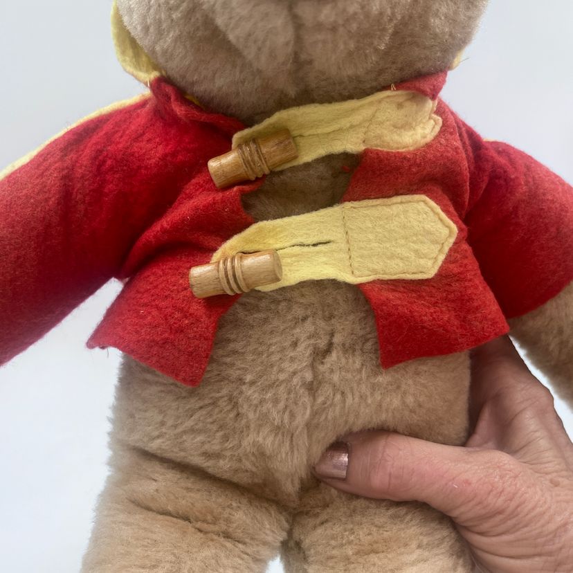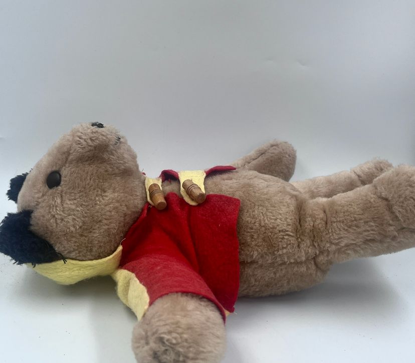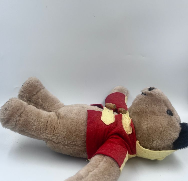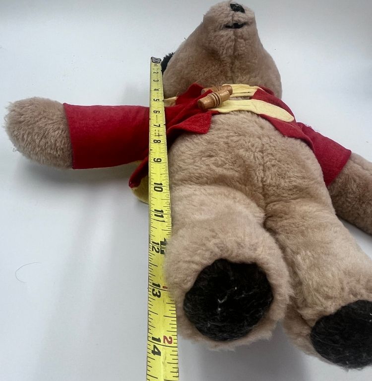 Charming vintage teddy bear for you or your collector. He's free of tears, holes or funky smells. Needs a new home. Measures approx 14" Coat is felt