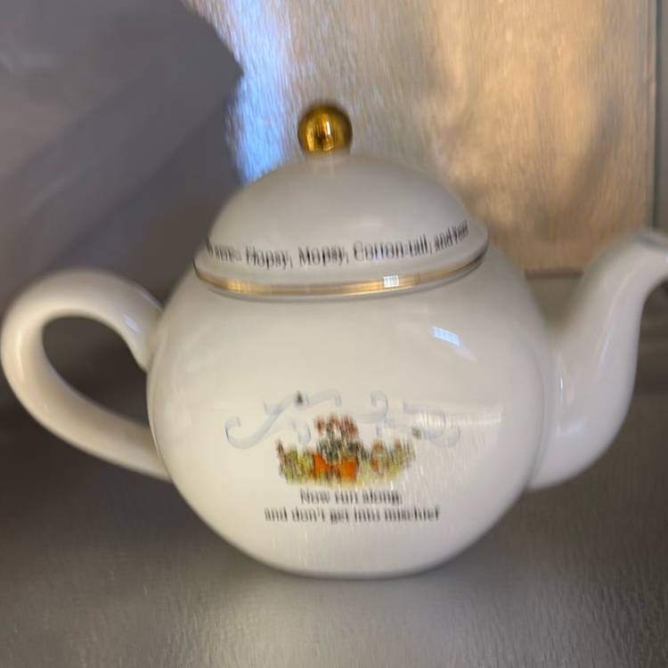 This is a classic story and the story is depicted on an adorable tea pot. It’s perfect with the details of the rabbits, the gold trim and the beginning of the story written above the gold trim. The story runs along the top and goes right into the back of the teapot. This is an amazing gift idea! It’s perfect for a nursery, child’s bedroom decor, or any room.
