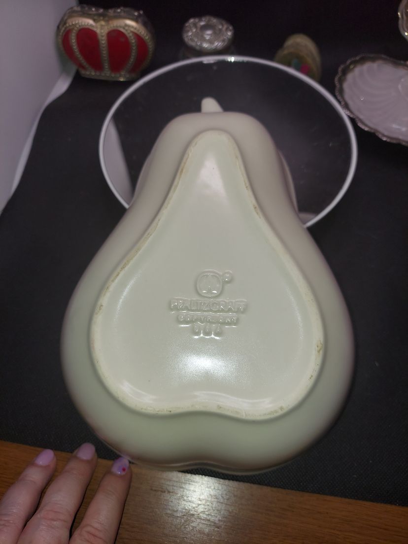 This vintage Pfaltzgraff stoneware heirloom pear-shaped serving bowl dish is a rare find from the United States, crafted in 1980. The stylish home decor piece features a glossy creamy white finish and a contemporary style, perfect for adding a touch of American charm to any table setting. This unique and original dish, with its oval shape is a collectible item that showcases the art pottery production style of Pfaltzgraff. This is such a Fun piece, I can see cut up different colored PEARS in it on Fall table!! This will match with every decor. It is Pre-loved but in Fantastic condition with NO chips, NO cracks and NO stains. Please check out the HEART Shaped dish I'm selling also!