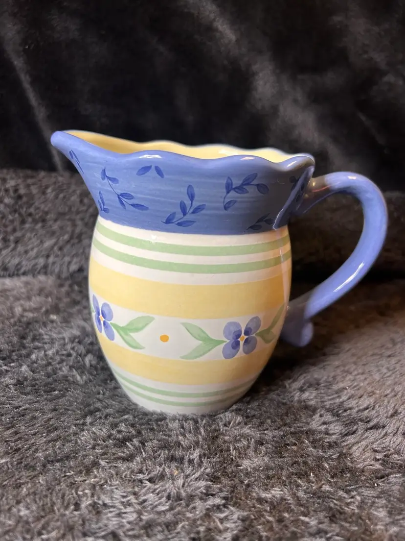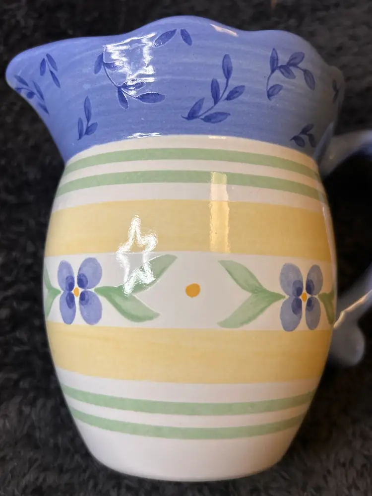 This is a Pfaltzgraff "Summer Breeze" ceramic creamer pitcher, part of a dinnerware pattern introduced in 1998.