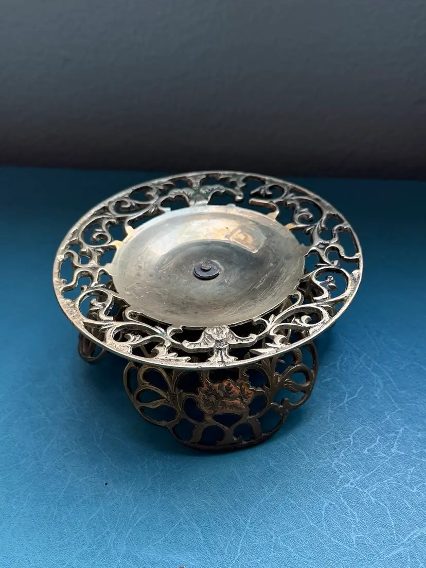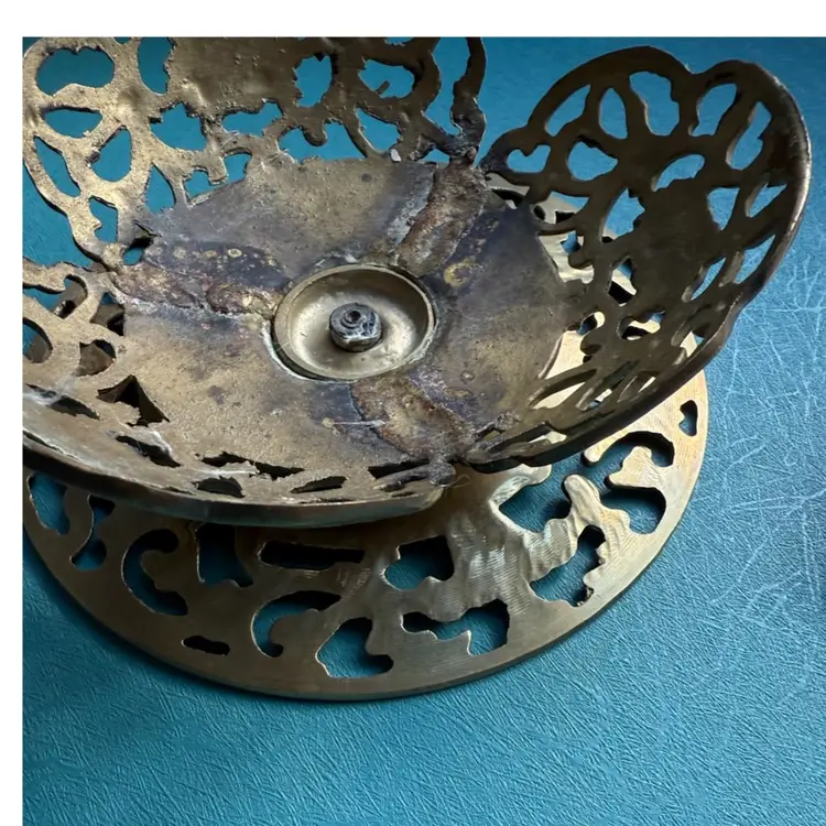 Instant touch of Hollywood Regency glamour and global flair to any space. Beautiful patina. Holds a piller candle.