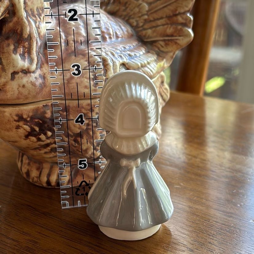 Vintage ceramic marked 1972 Pilgrim Girl. Measures 3” tall. No chips or cracks.