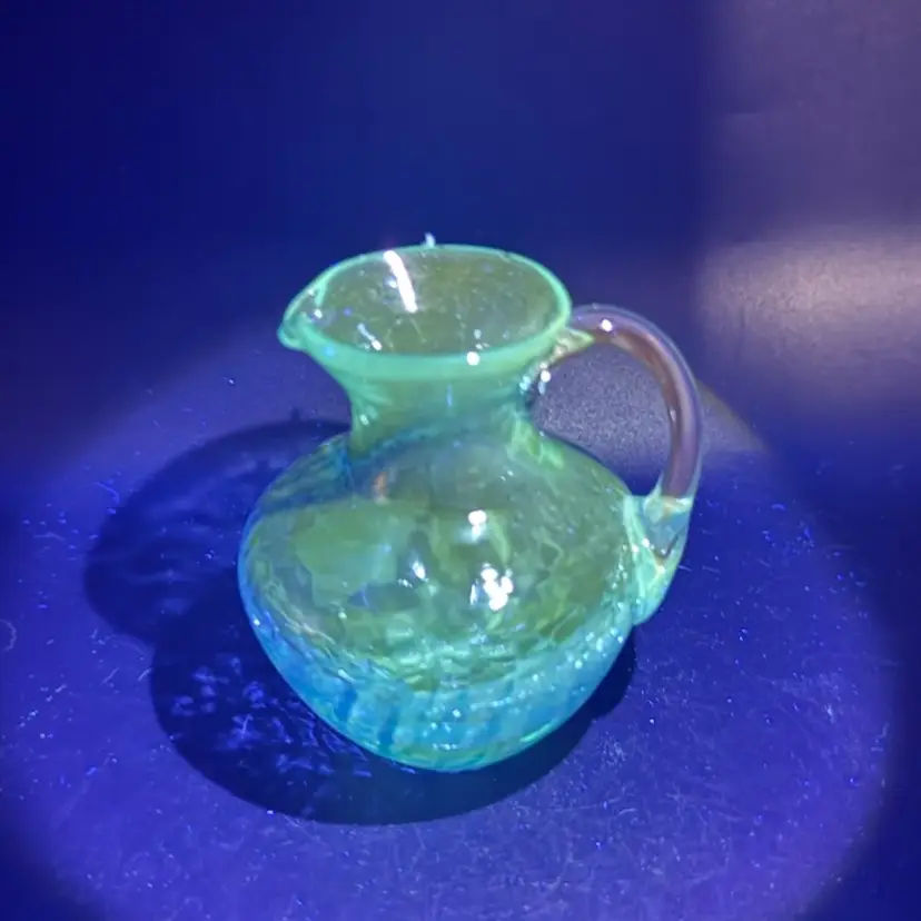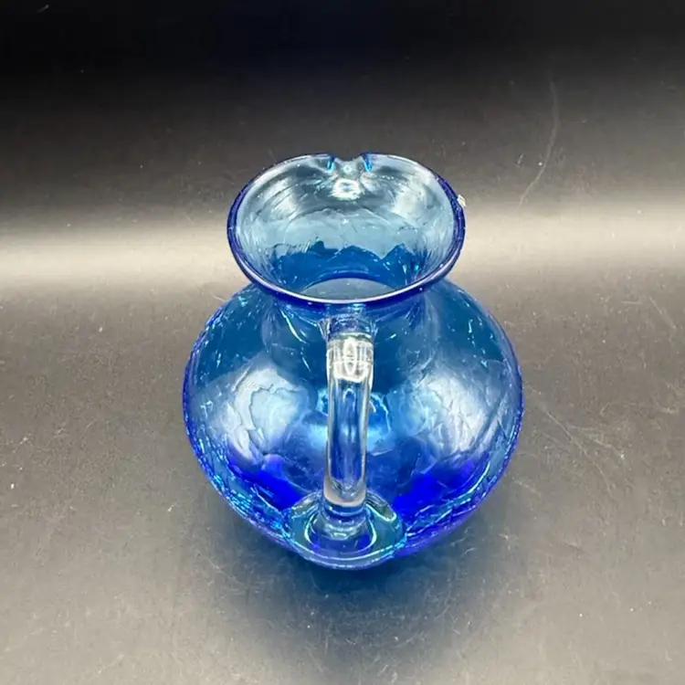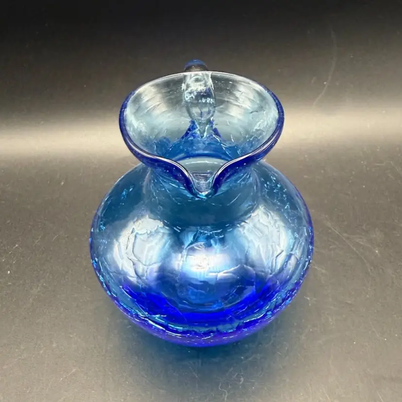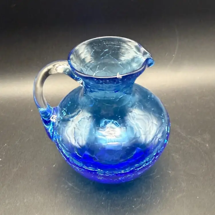 Crackle glass, also known as ice glass or crazed glass, is a decorative glass technique where the glass is intentionally fractured and then reheated to seal the cracks. This process creates a unique, web-like pattern within the glass, giving it a distinctive appearance. It became particularly popular in the mid-20th century for decorative items like vases, pitchers, and bowls.