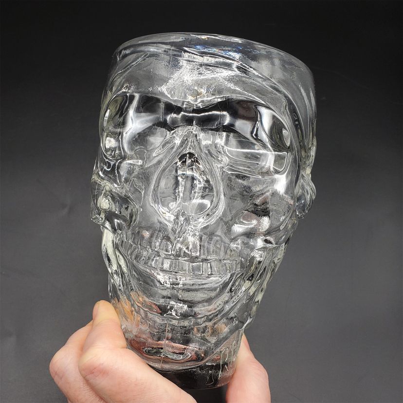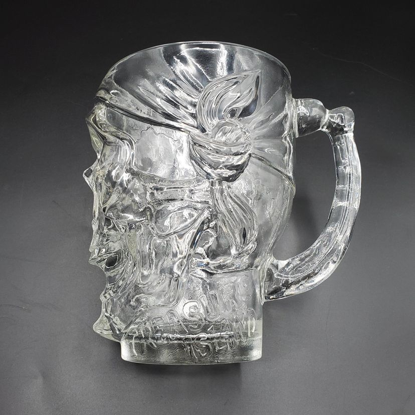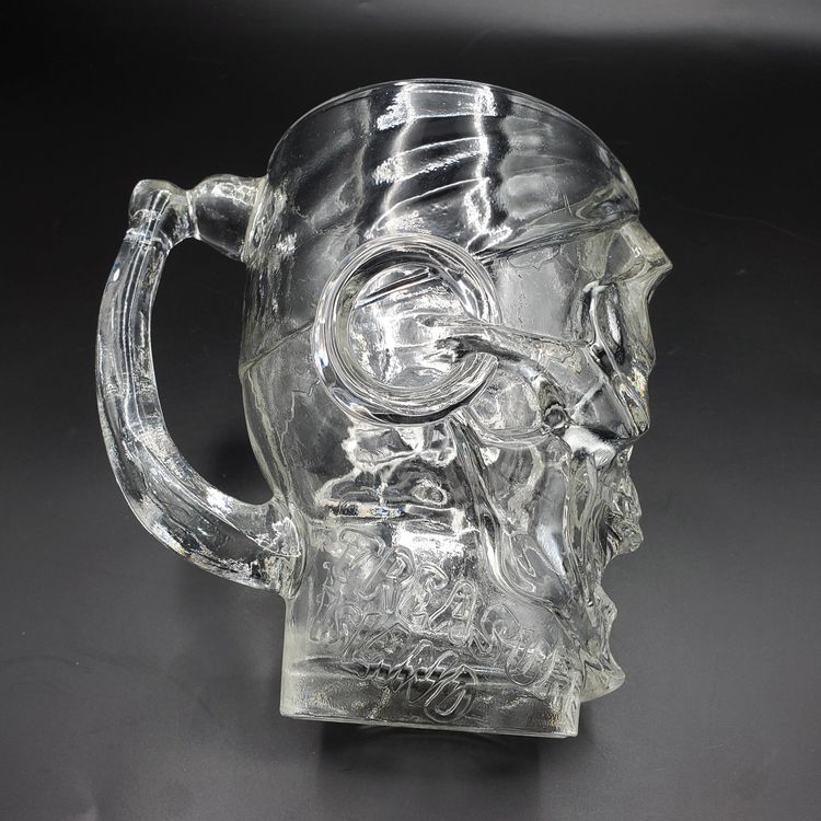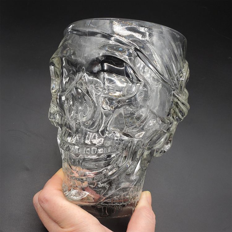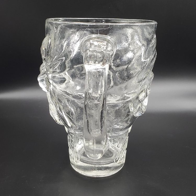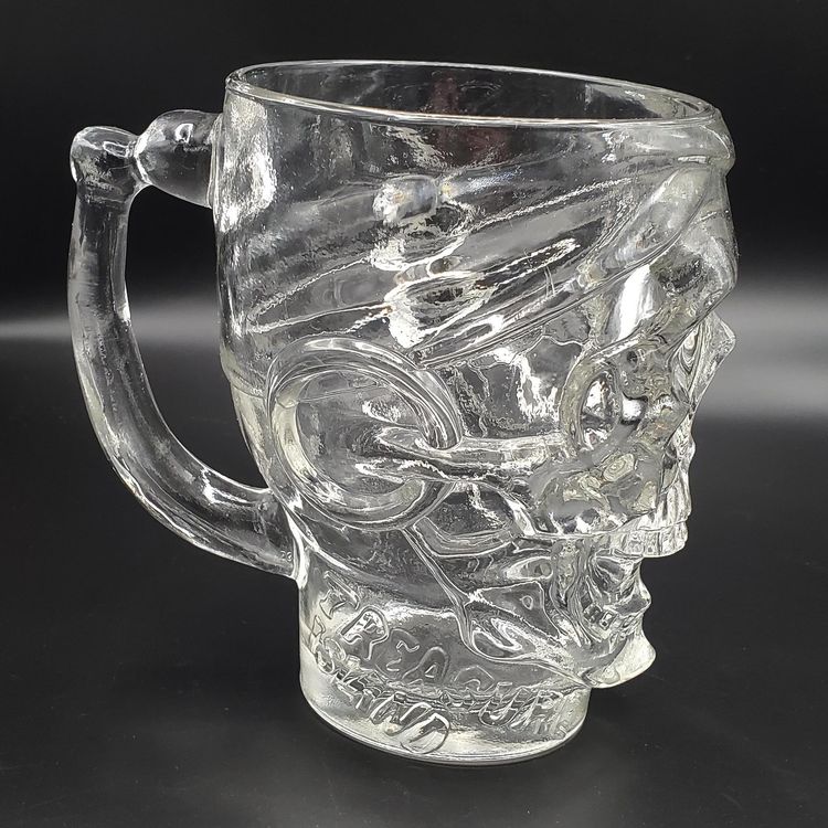 This heavy glass stein stands 6.5" tall. There is a lot of detail in the skull form as you examine the glass. It works as a casino souvenir, a Halloween accessory or for the many who love collecting skulls in general. It makes for impressive barware too. Thanks for looking!