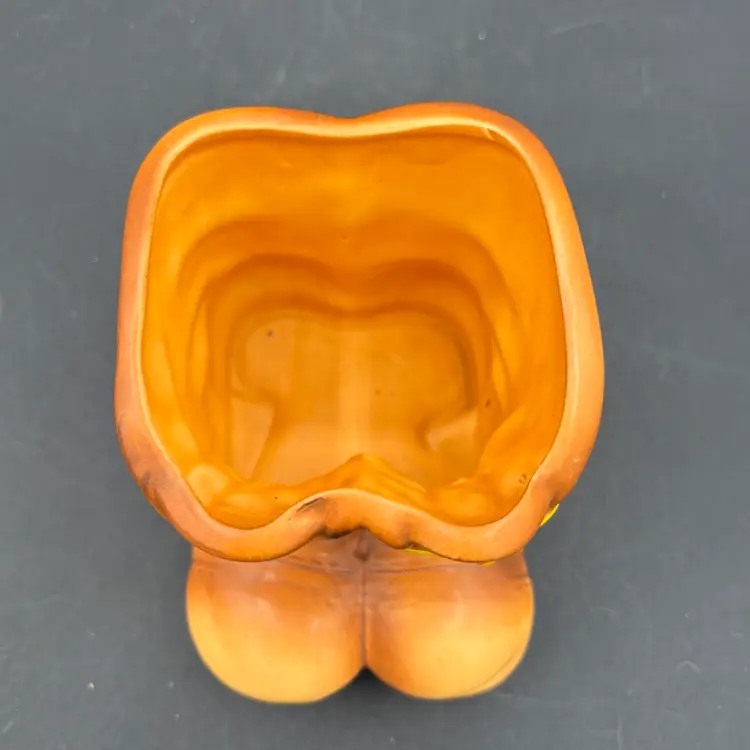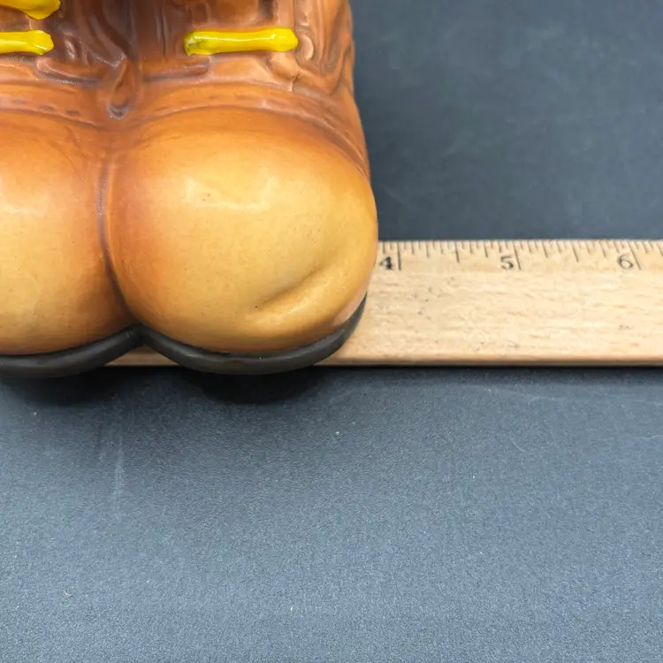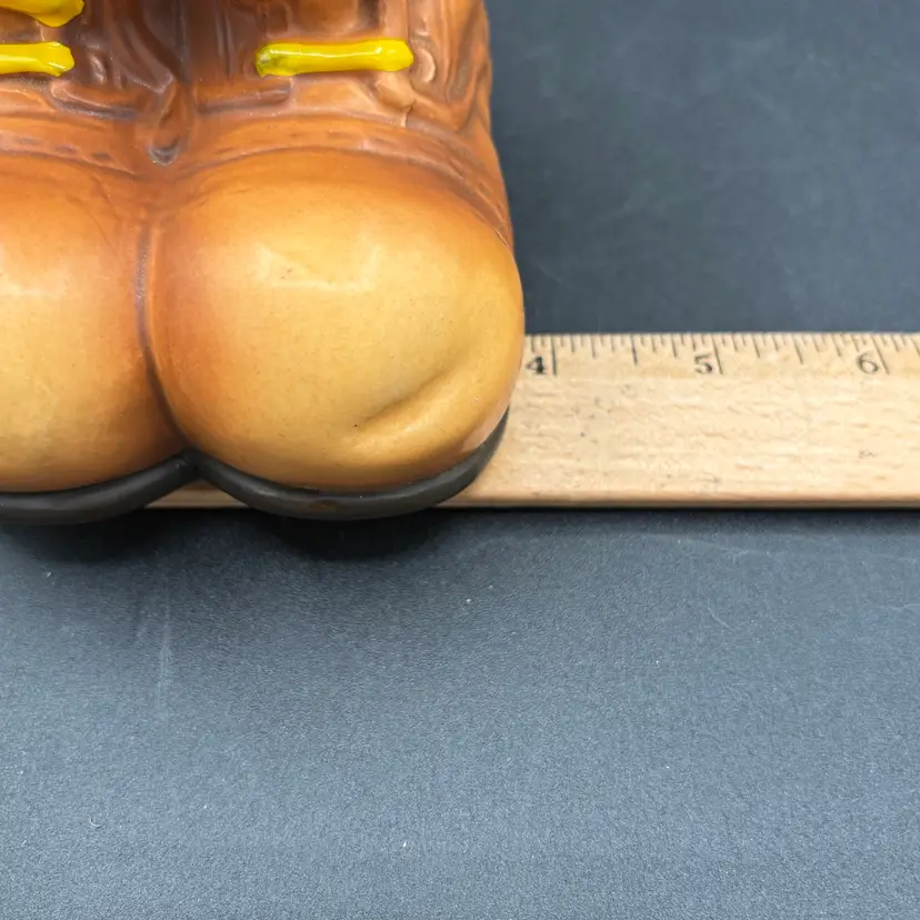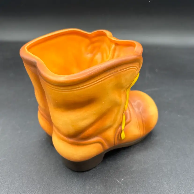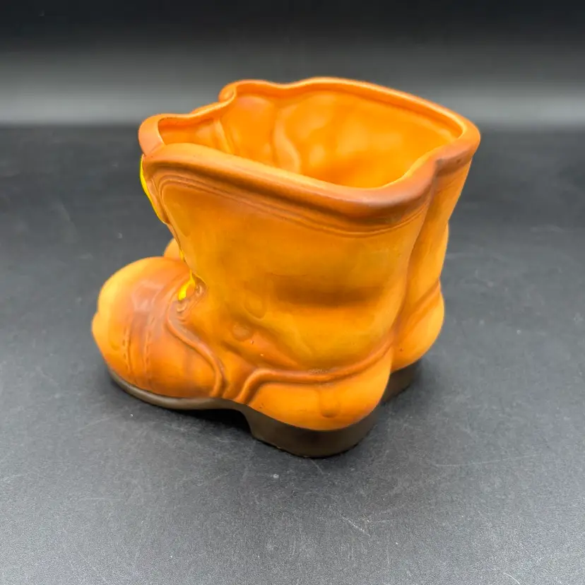 Vintage planter - Lefton made in Japan tan boots, yellow laces
