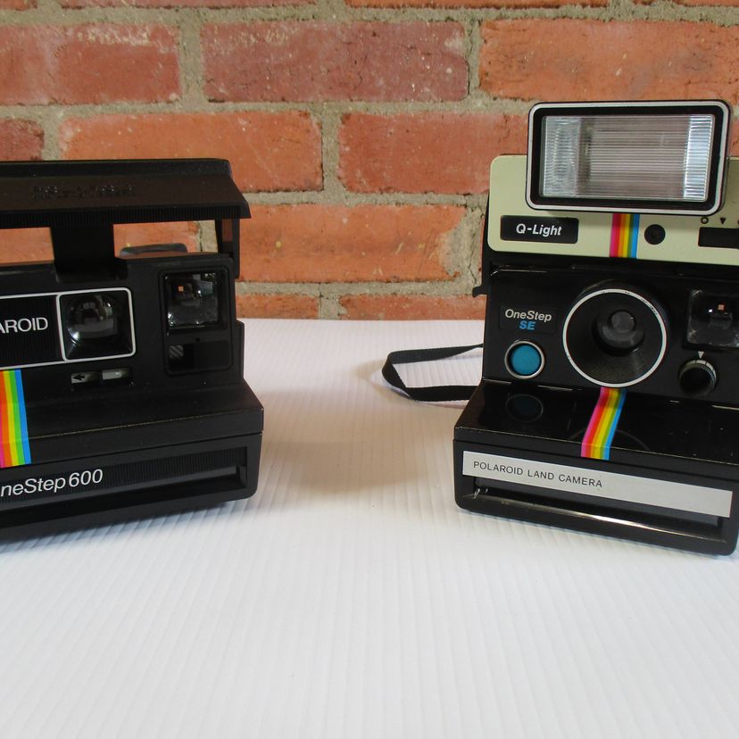 Lot of two vintage Polaroid Land Cameras One Step SE, One Step 600 plus carrying bag Cameras are untested very good cosmetic condition Battery compartment is good on flash unit no corrosion For parts or repair Your items will be packed very well and shipped promptly. Always glad to answer any questions. Thanks for looking!