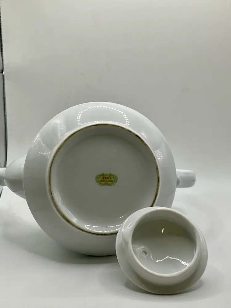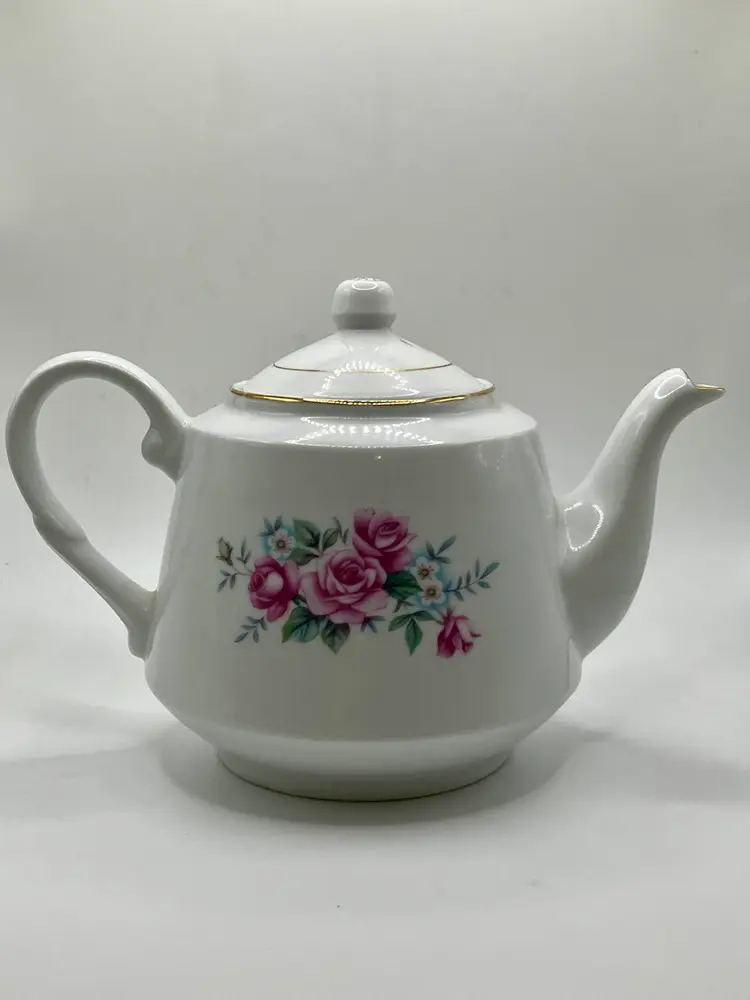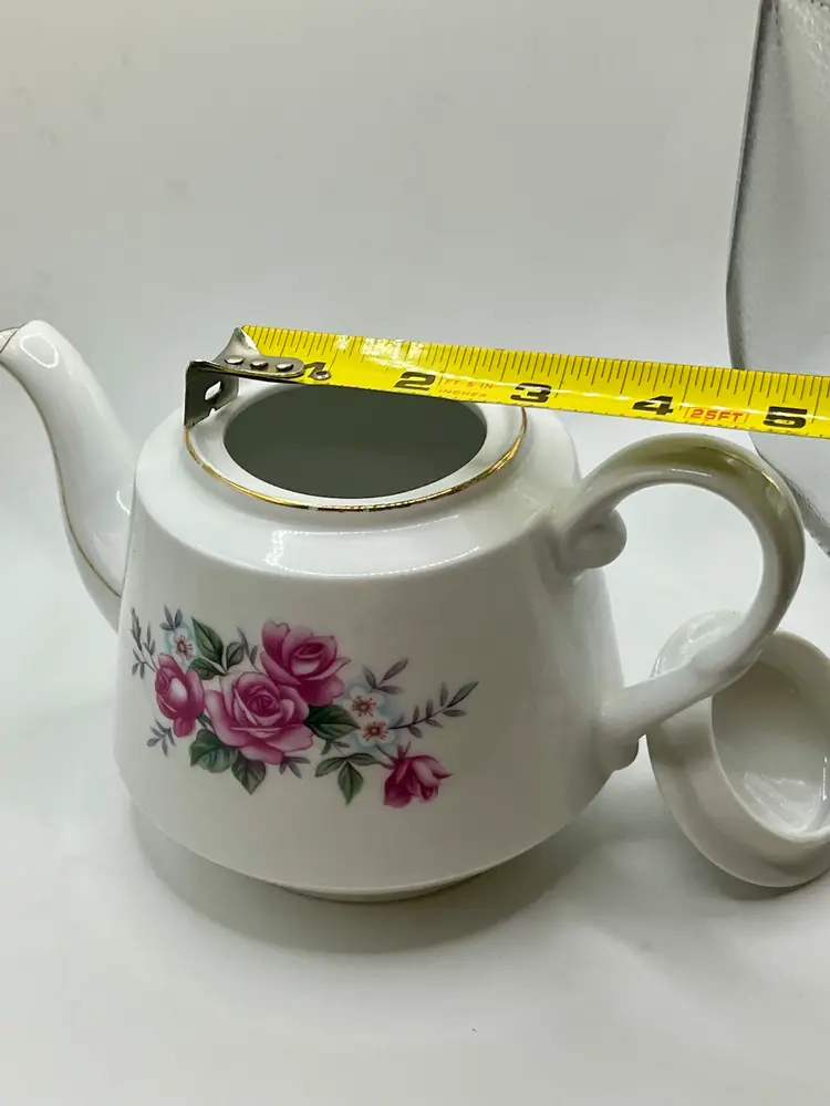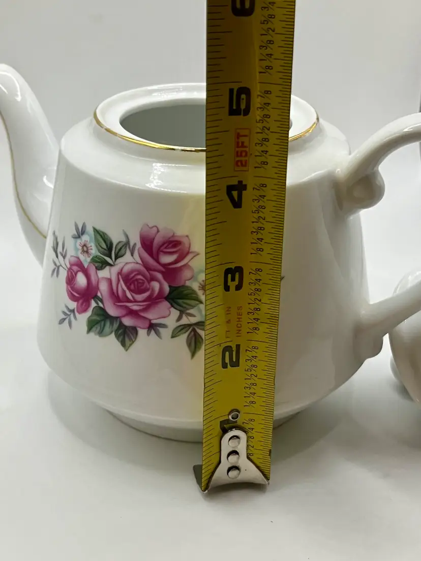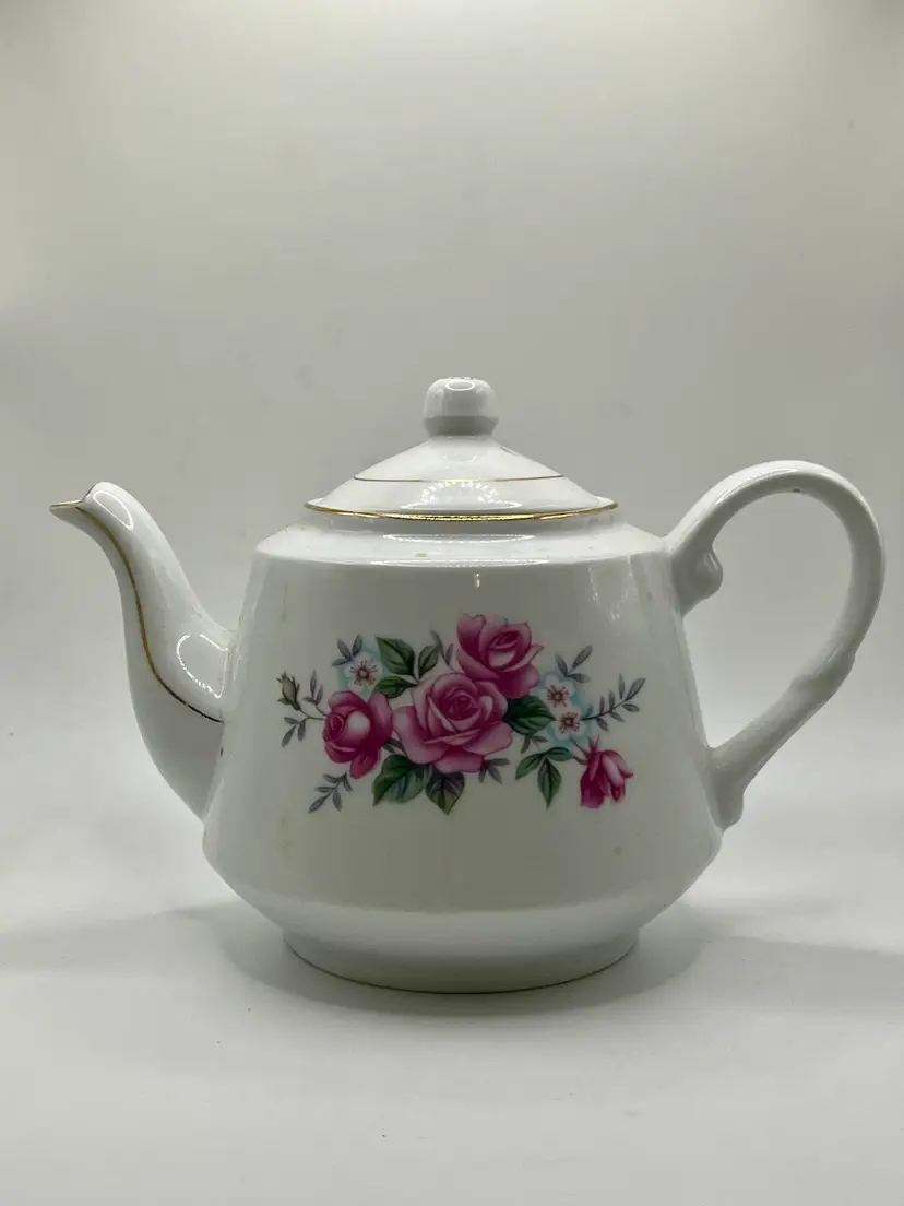 Vintage Porcelain Cabbage Rose Bouquet Gold Trim Teapot China. No Condition Issue. 5”