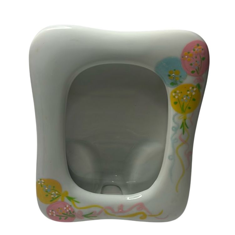 Vintage Porcelain Picture Frame With Hand Painted Pastel Balloons Pink, Yellow, Blue. Made By Takahashi - Based In San Francisco- 1989’s “chime” No Damage & Measures 5.5” Tall & 4” Wide