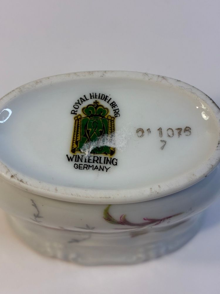 Vintage Porcelain Toothpick Holder From Royal Heidelberg Winterling Germany Rose Brier Pattern 2.5”
