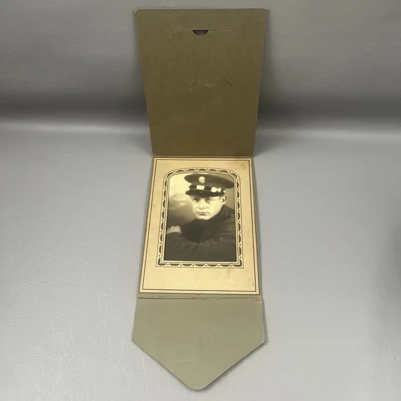 Vintage Portrait Photo US Army Uniform World War II Era Male Service Cap Man Photo with cardboard frame is 4.75x6.75"