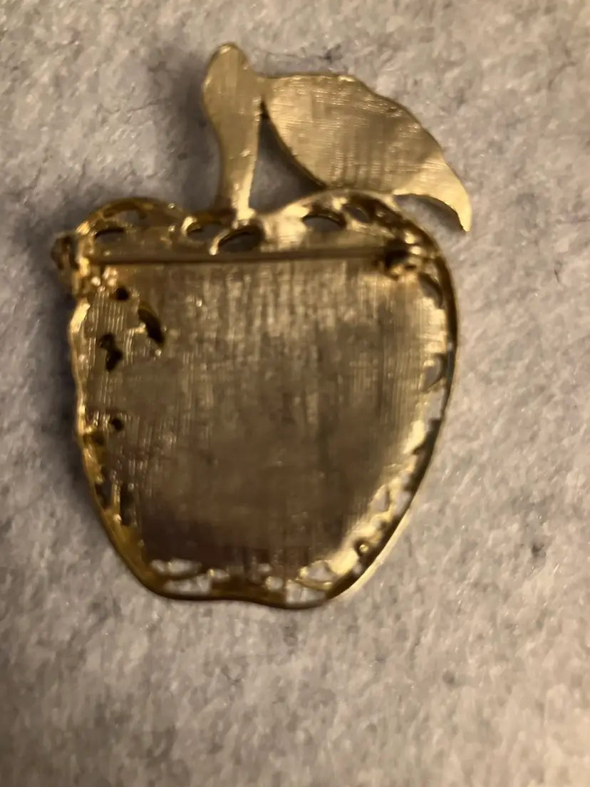 Vintage purple swirl apple with clear rhinestones brooch. No makers mark. 2” L X 1-1/2” W. #B82