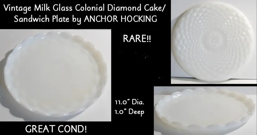 Vintage RARE Anchor Hocking Colonial Diamond Milk Glass Cake / Sandwich Serving Plate