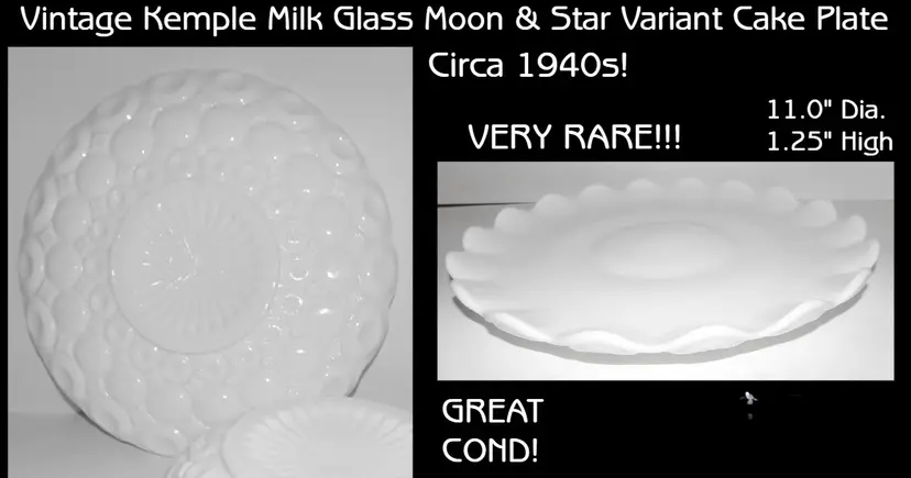 Vintage RARE Kemple Milk Glass Moon & Star Variant Cake Plate c1950s