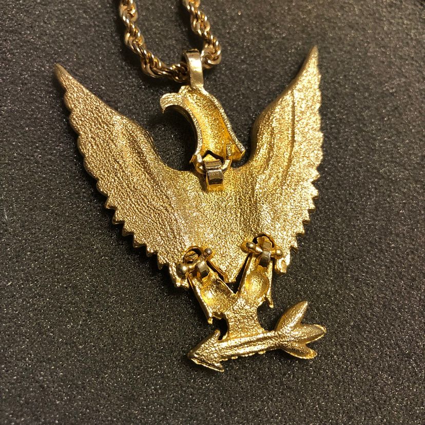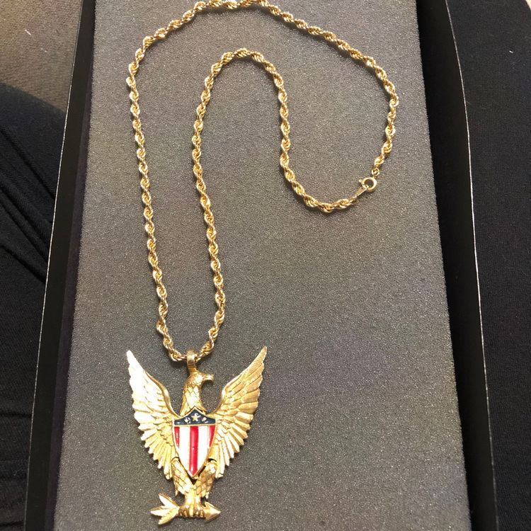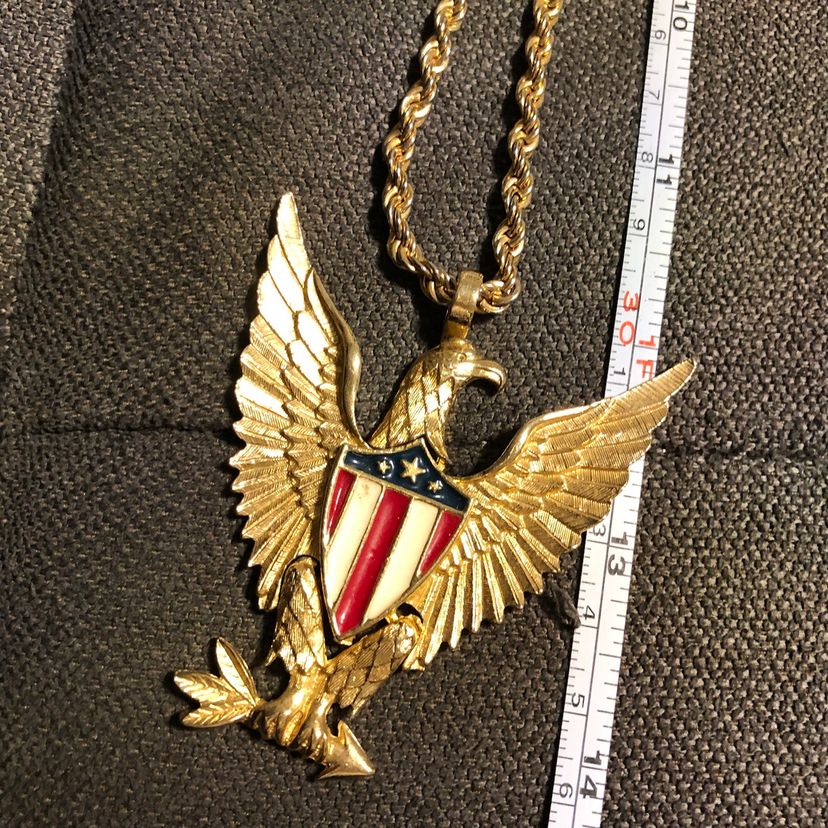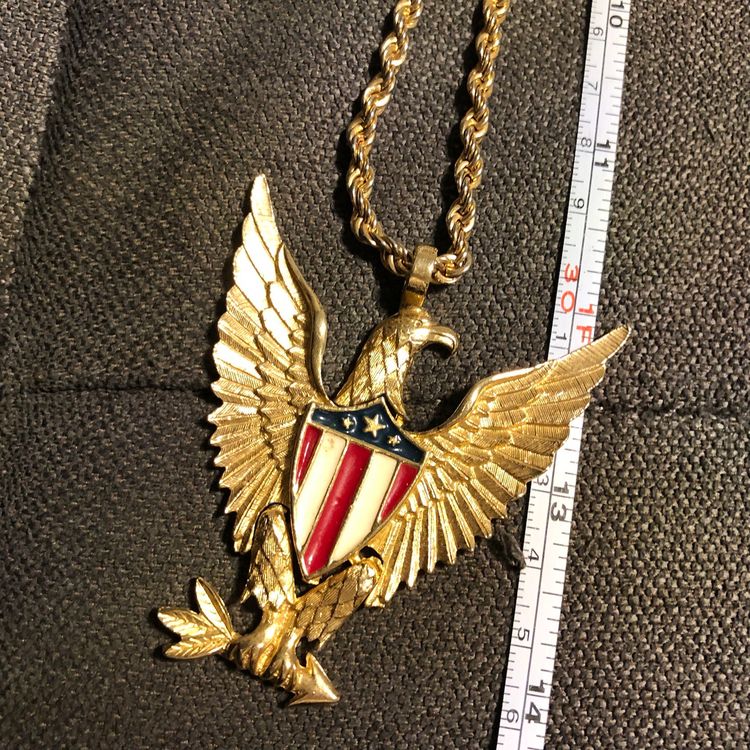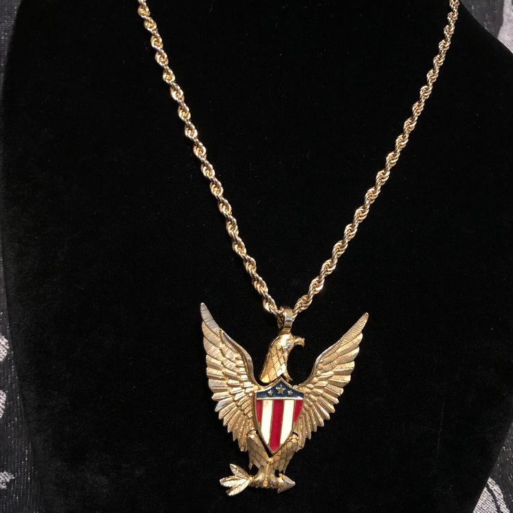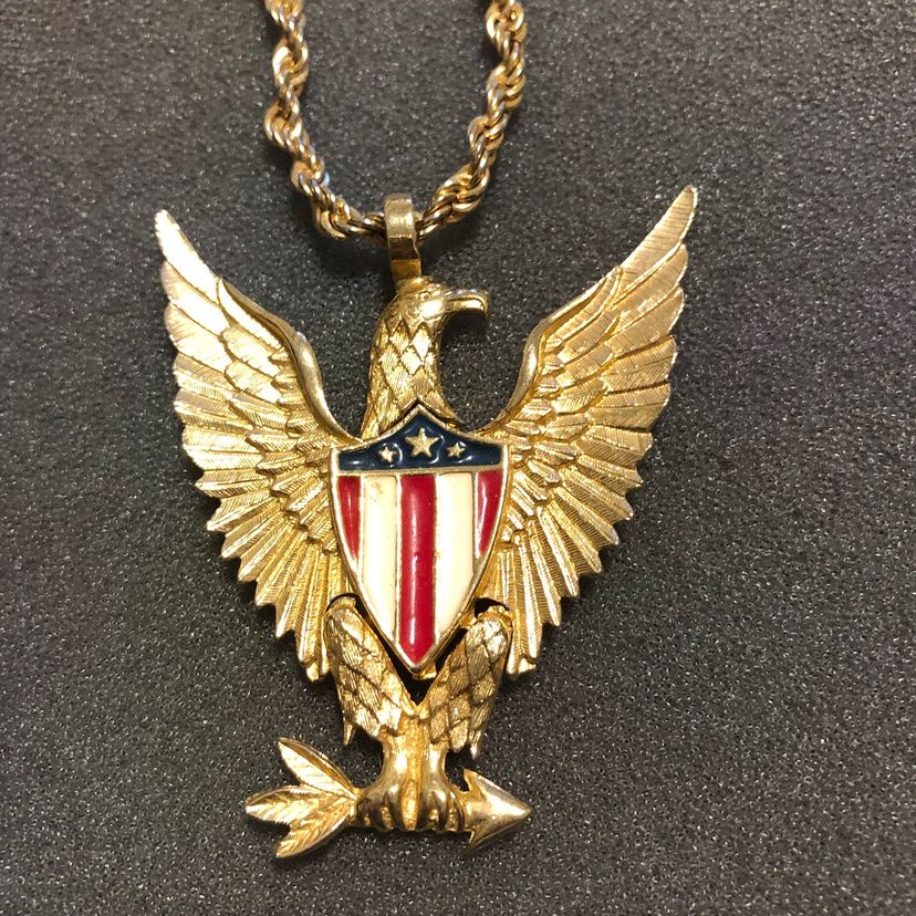 Vintage Red White Blue Gold-Tone Flying Eagle Carrying Arrow Pendant Necklace