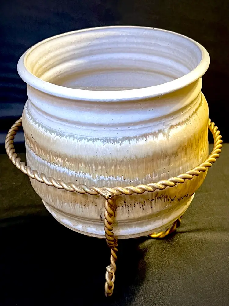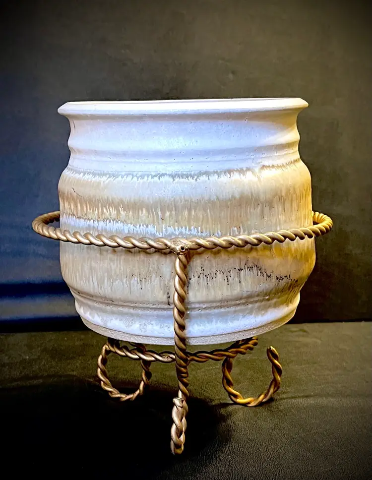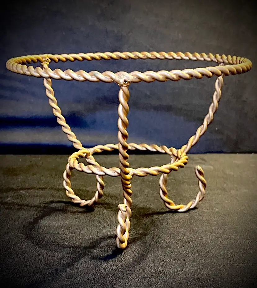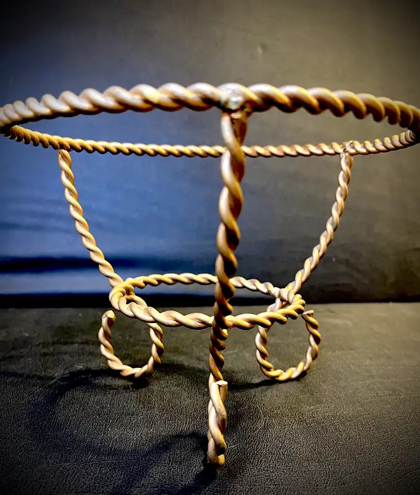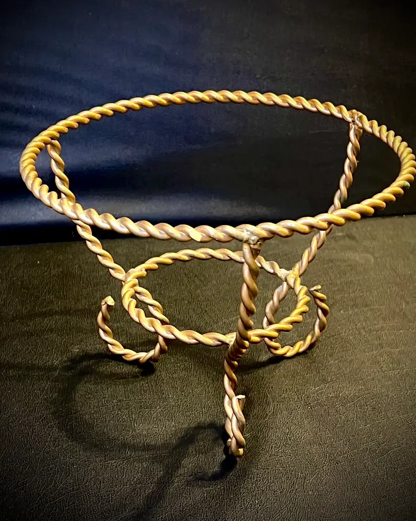 🌟Vintage gold rope plant stand, regency style. This stand holds a medium sized pot, stands 6” tall and has an 8” diameter. Good vintage condition! Pot not included in price, but could be bundled if buyer desires!