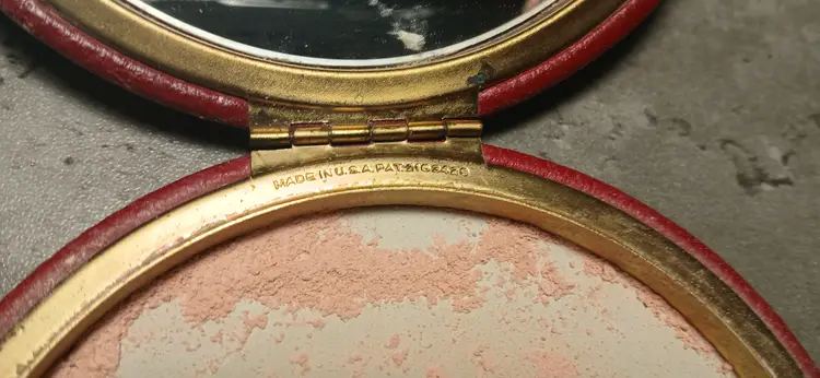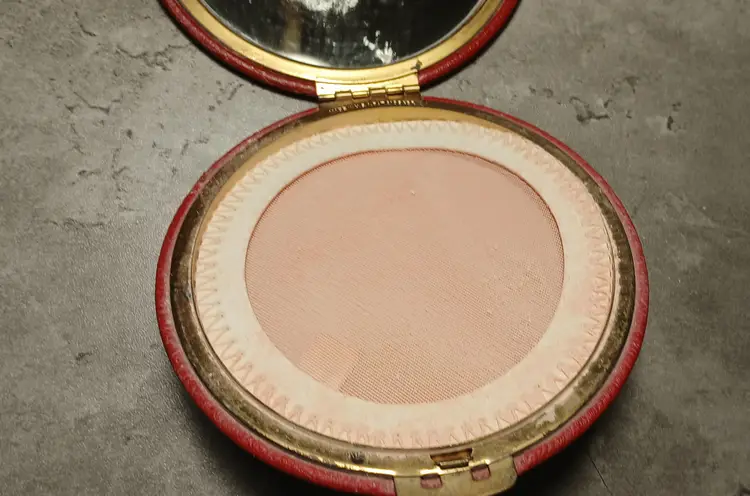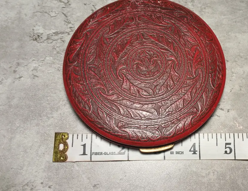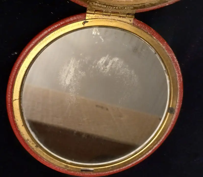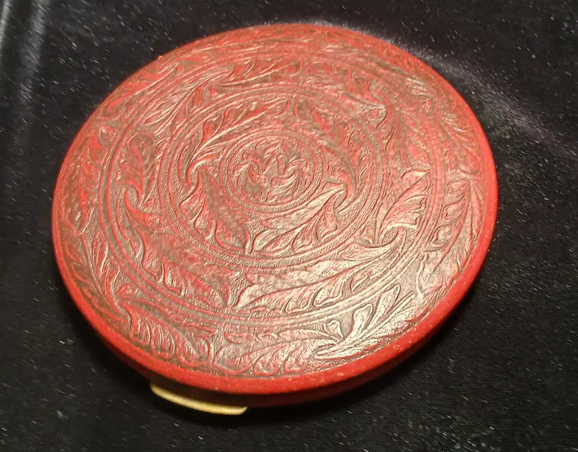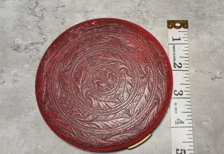 The Vintage REX Fifth Avenue Compact Powder is a rare collectible piece originating from the United States during the 1930-1949 time period. Made of luxurious flowered embossed leather, this compact powder showcases a unique design and craftsmanship that reflects the elegance of that era. With no modifications made to the original piece, it retains its historical authenticity and charm, making it a valuable addition to any vanity or collector's display. The mirror does have a mark on it. Please see pictures