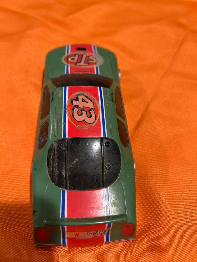 The Vintage Richard Petty Plastic Car is a collectible item that pays homage to the legendary NASCAR driver, Richard Petty. This piece is perfect for fans of auto racing, specifically NASCAR, looking to add a nostalgic touch to their collection or display. The plastic car serves as a reminder of the storied career and achievements of Richard Petty in the world of racing.
