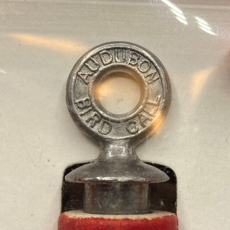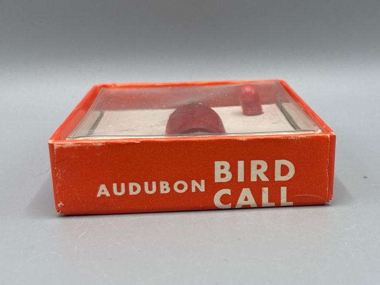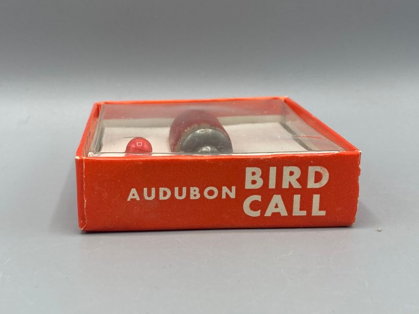 This bird call is in good condition. I am not sure if it works as I haven't taken it out of the box as it looks like it may never have been used. The call measures approximately 2" tall.