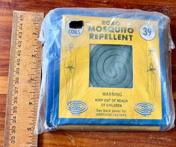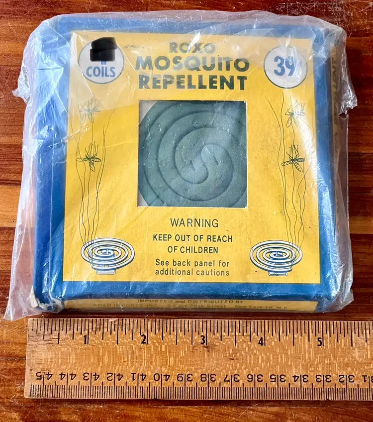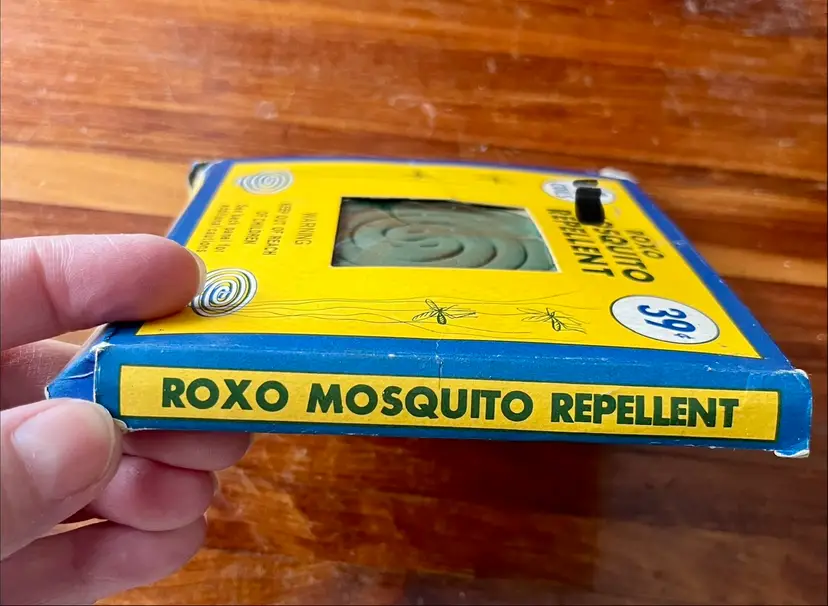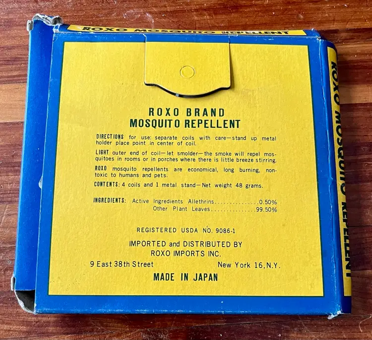 The product is a vintage Roxo Mosquito Repellent Coil Box from Japan, Registered USDA No. 9086-1, containing 2 unused coils in a box. With its unique design and origins, this product adds a touch of nostalgia and authenticity to any collection or display. Not guaranteed to actually function ~ for collectors or as a PROP in theater, film studio productions for authentic period use.