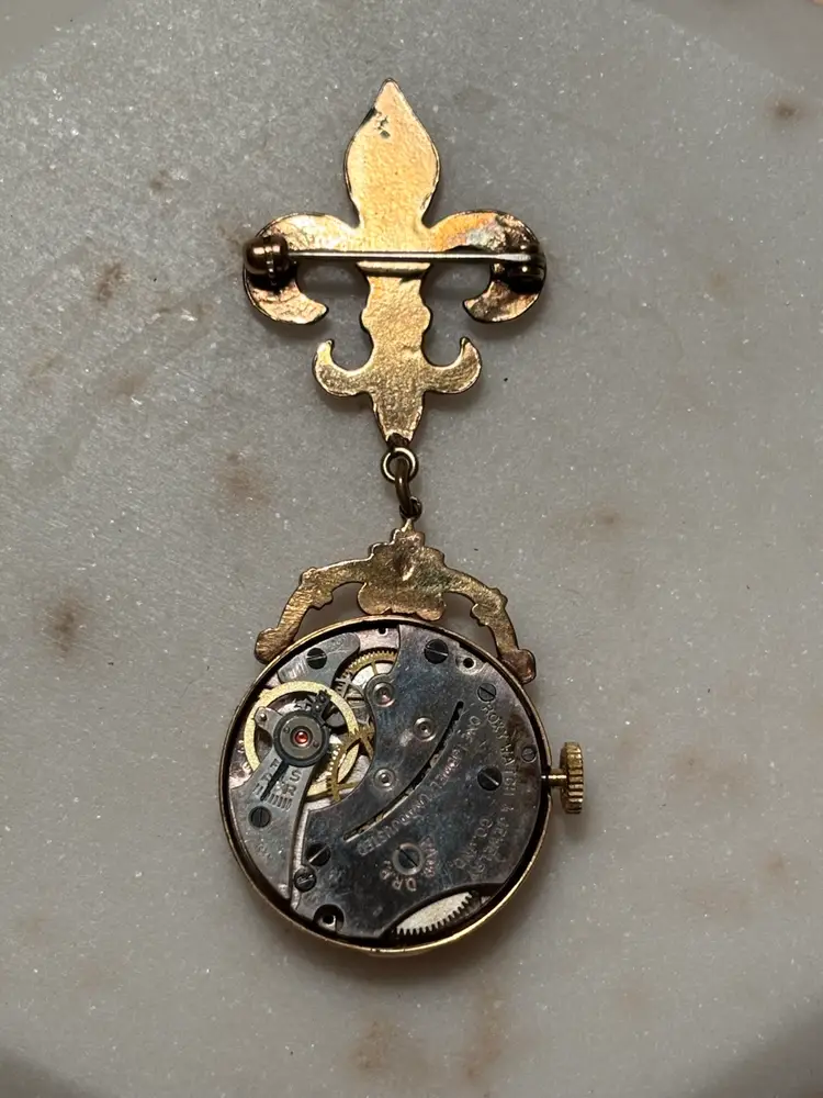 The Vintage Roxy Watch Co. Swiss 1 Jewel Art Deco Dial Fleur De Lis Lapel Watch is a stunning timepiece from the 1920s, featuring a mechanical manual movement with a single jewel. This elegant lapel watch for women is adorned with a royalty-inspired theme and multi-dial design, showcasing the intricate craftsmanship of its Swiss manufacture. With a vintage charm and a touch of history, this watch from Roxy Watch Co. is a unique and stylish accessory for any collector or watch enthusiast.