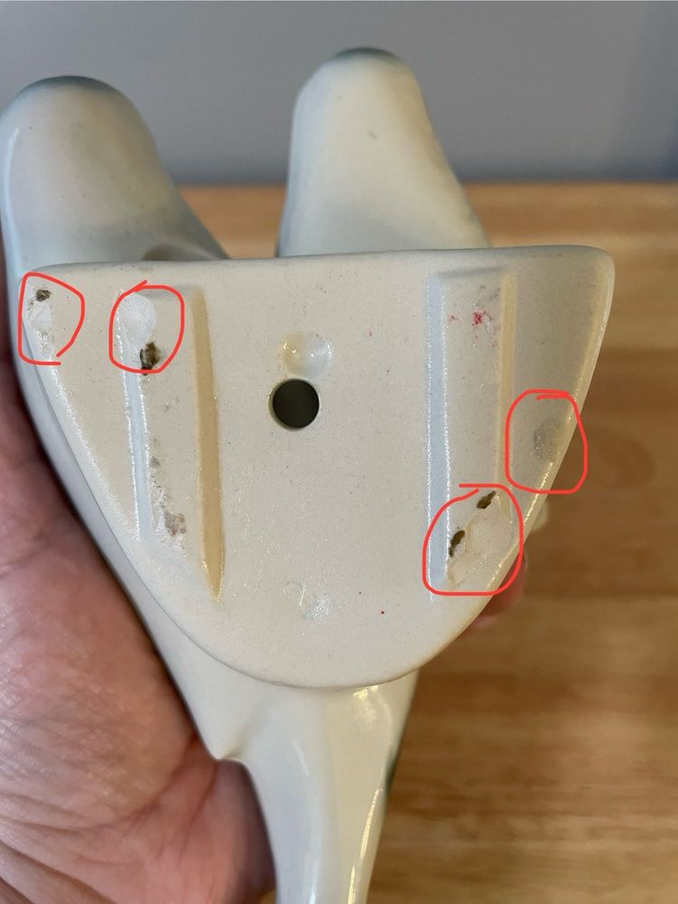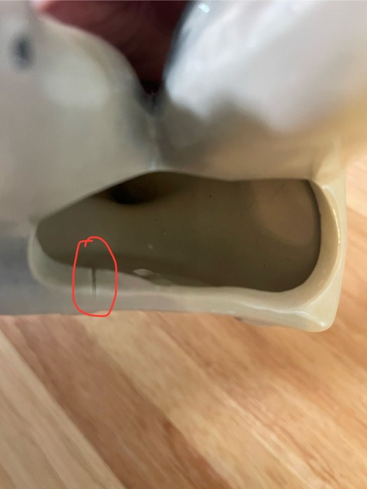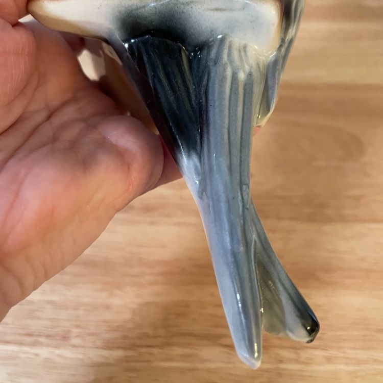 In great vintage condition. Some chips and a crack on the back (see pictures), but those won't be seen when displayed. Beautiful piece! 7" x 3.5" x 2.5"