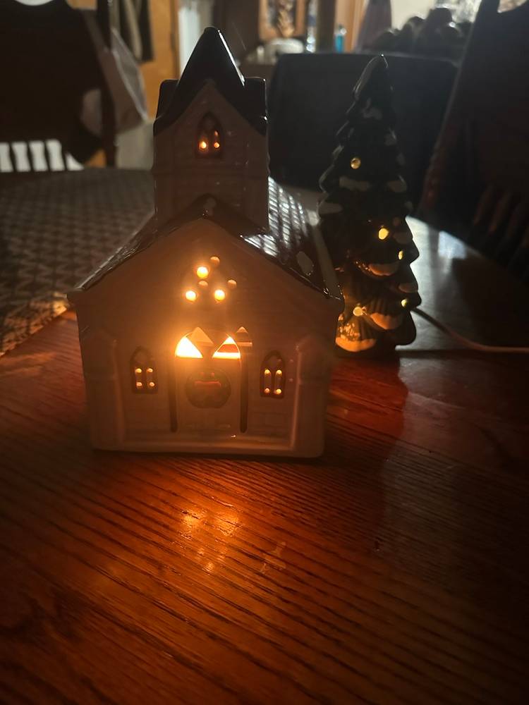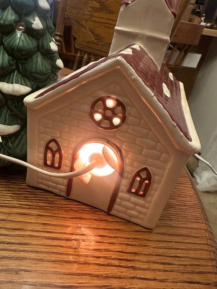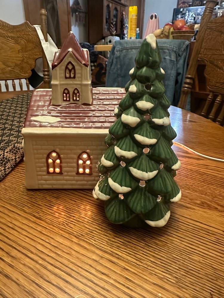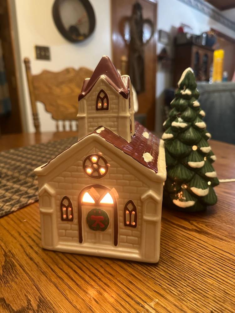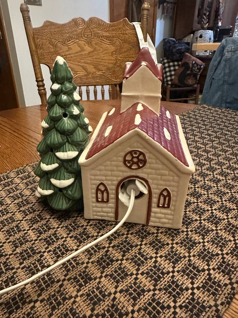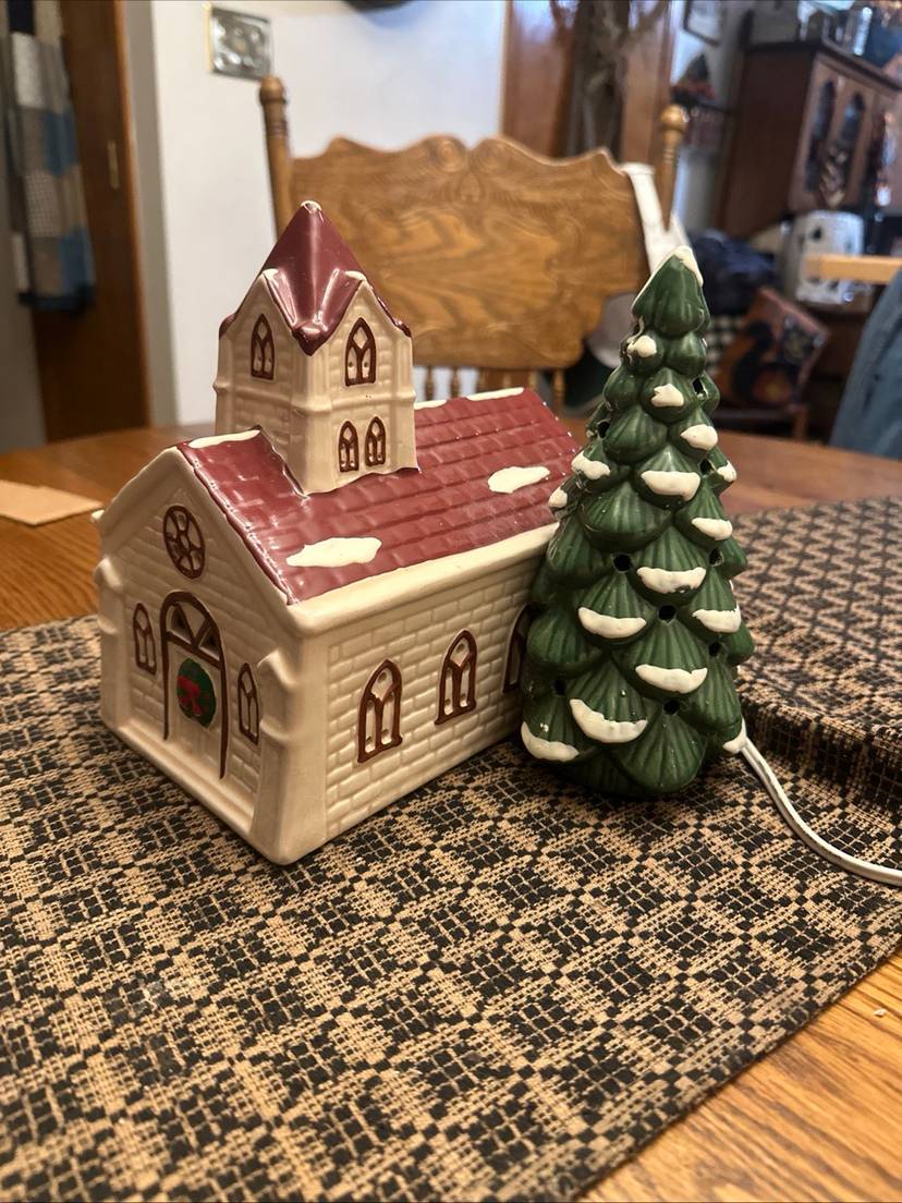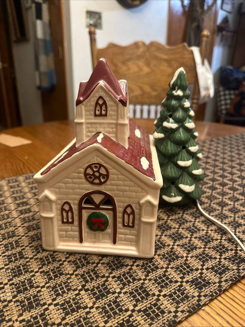 Vintage Russ Lighted Church Porcelain W/ Tree