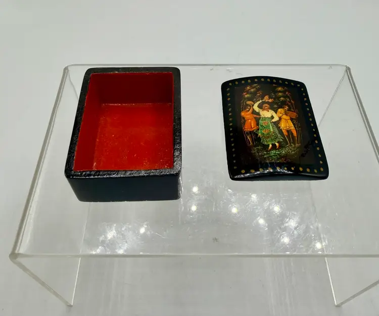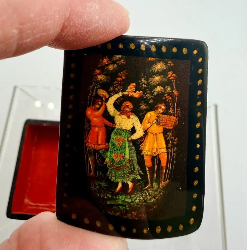 Vintage Russian Lacquer Micro Miniature Box With Lid