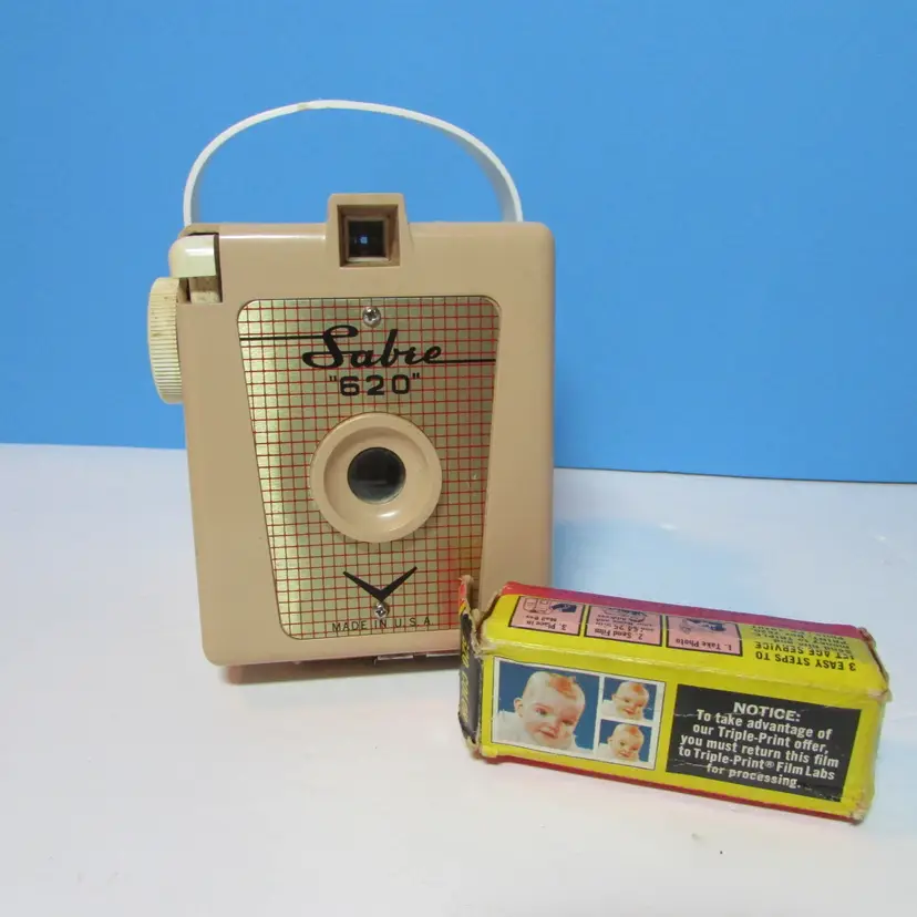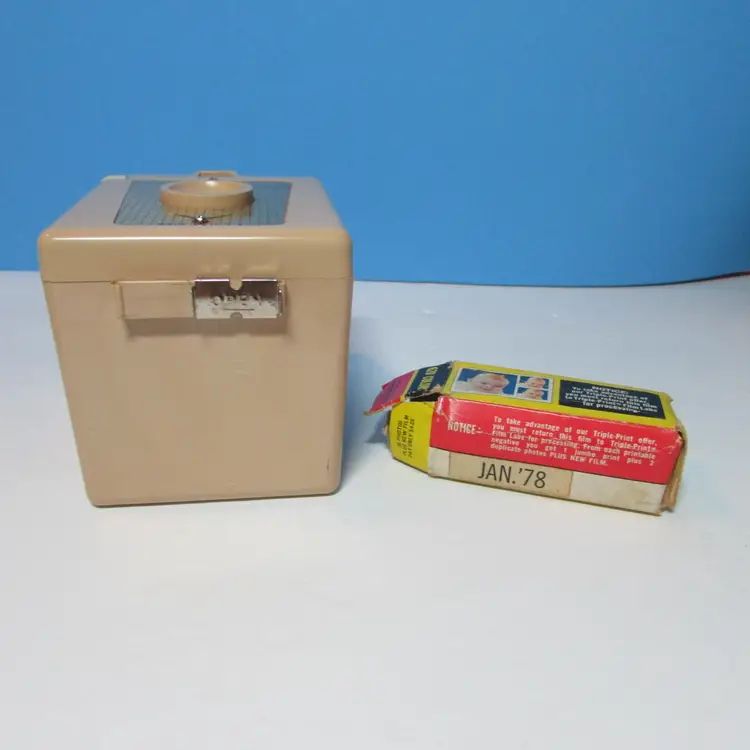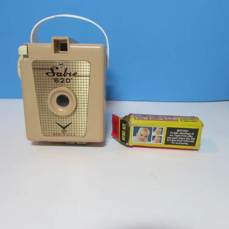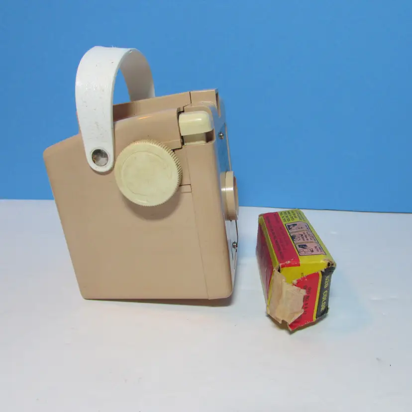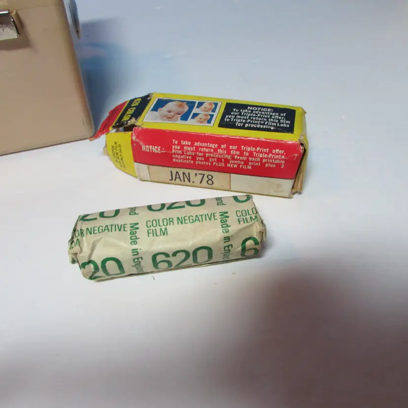 This camera went out of production in 1972. Retro pink color. Includes roll of 620 film, the type this camera used to use. Gave pictures 2 1/4 x 2 1/4.