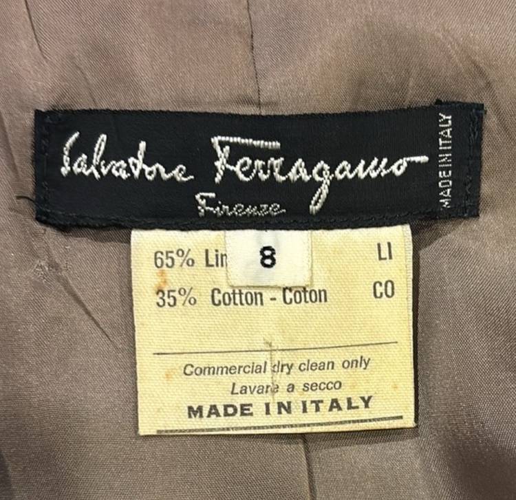 Vintage SALVATORE FERRAGAMO Womens Blazer Jacket Linen & cotton Made in Italy. pre-owned, great condition. 1 button front , 2 small pockets front, shoulder pad vintage style. above hip length. size: 8 top shoulder to hem: 21” Pit to pit: 19” waist across: 18” shoulder to shoulder: 15” sleeve: from shoulder to sleeve hem:22”
