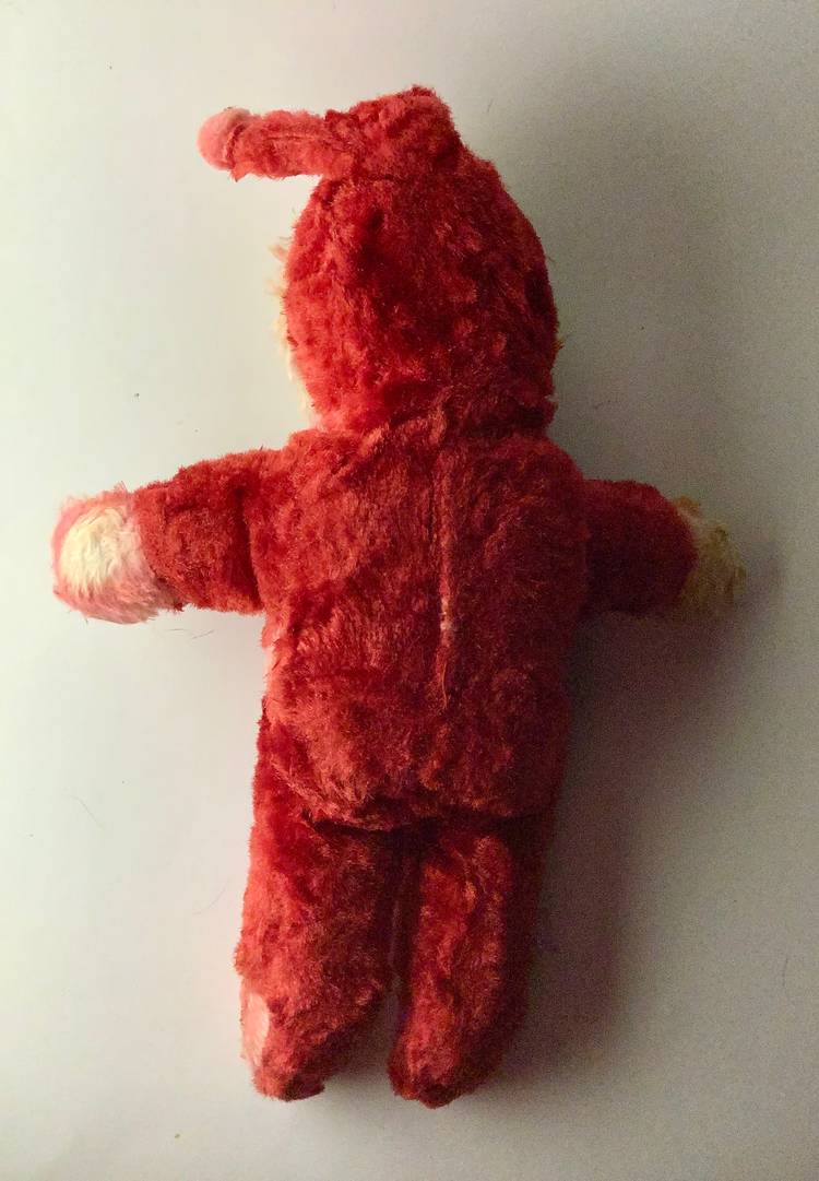 This Santa doll is 11” long, and has been around since the mid 1960s. Rubber face and fabric, plush body and hands. Very sweet, and only wear is some reddish dye on white from age and normal use. I appreciate your interest! I ship 3 day UPS and secure packing is guaranteed. Thank you!