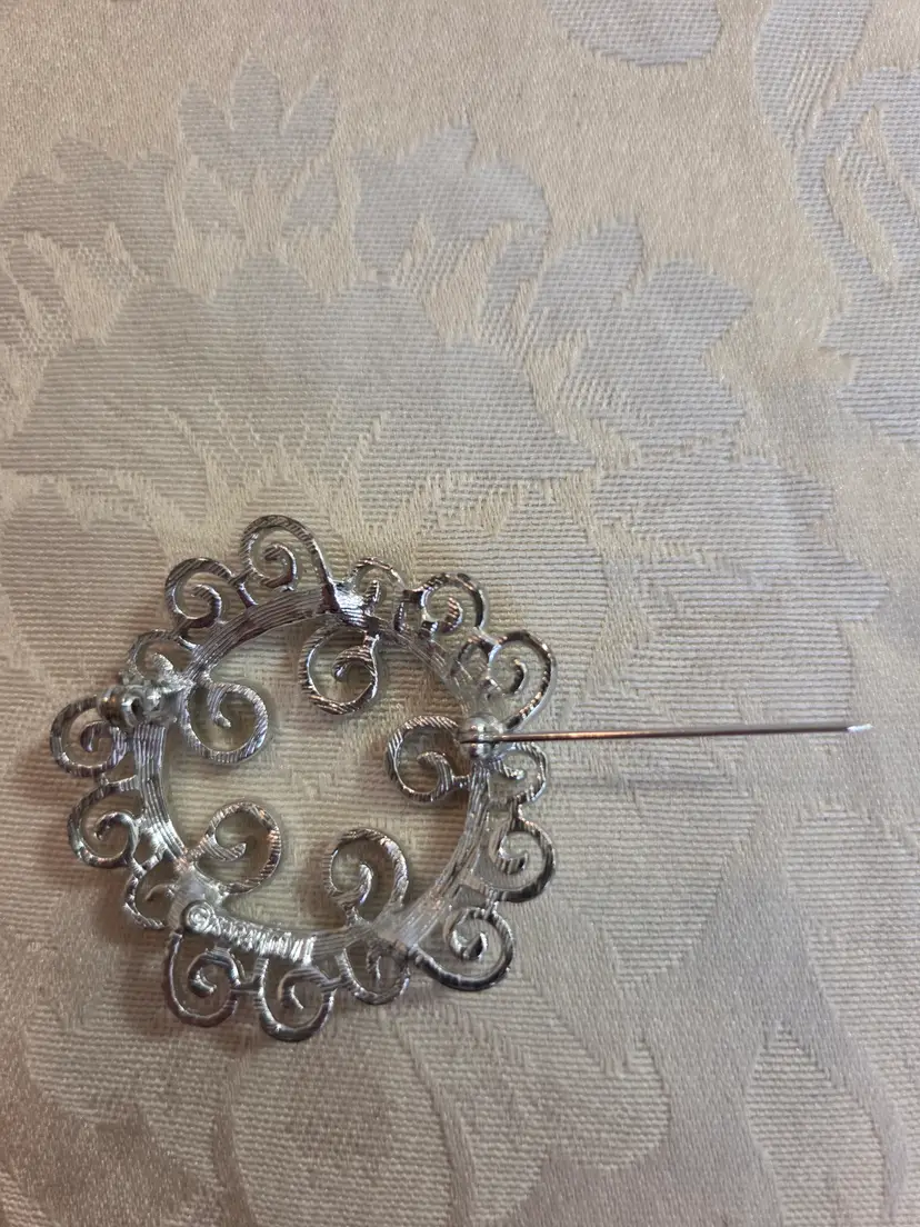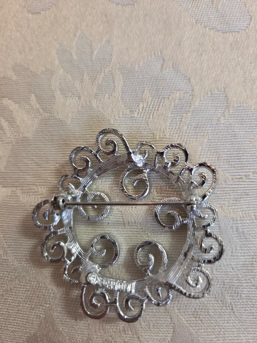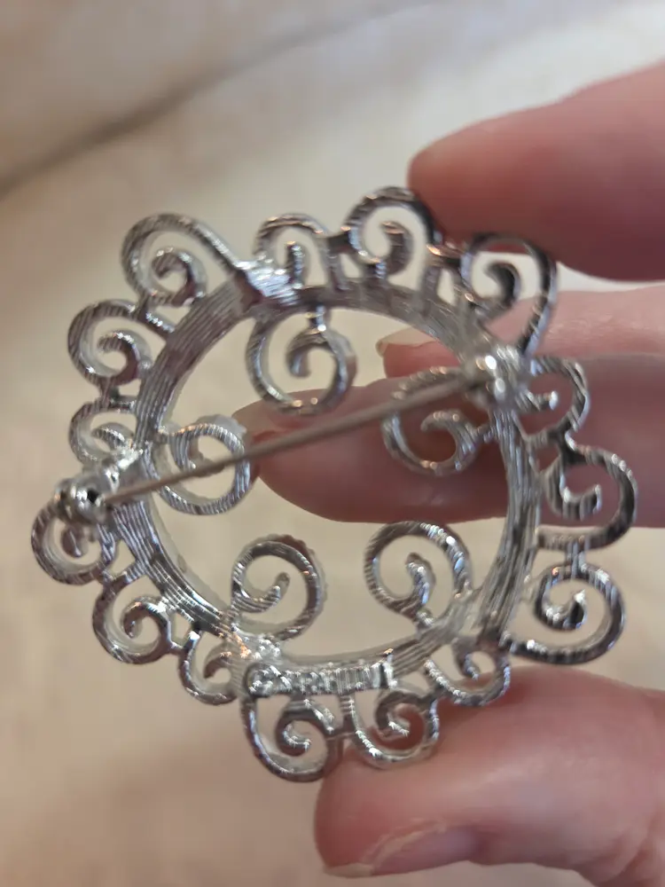 Vintage Sarah Cov (marked) Silver Tone Round Brooch