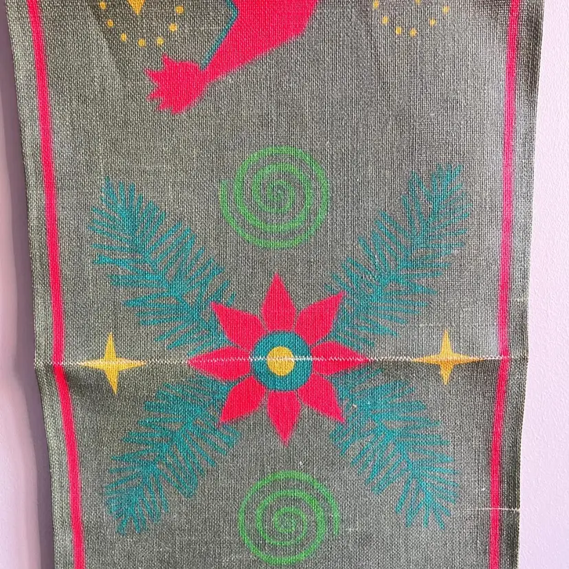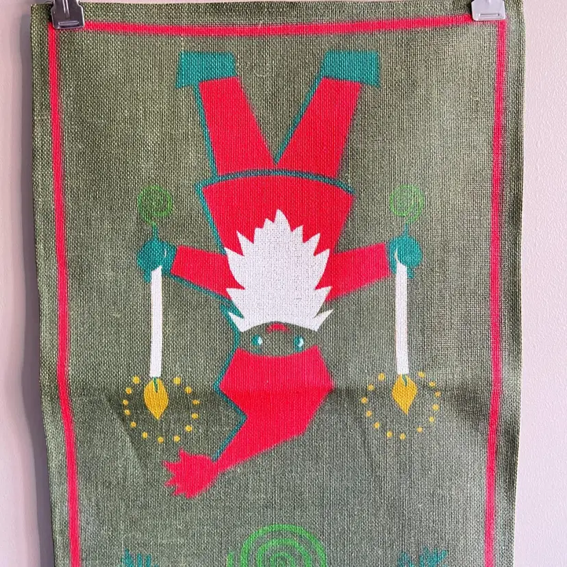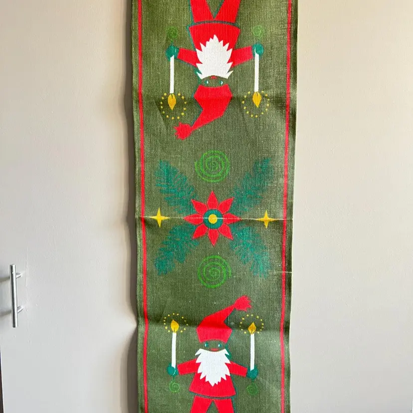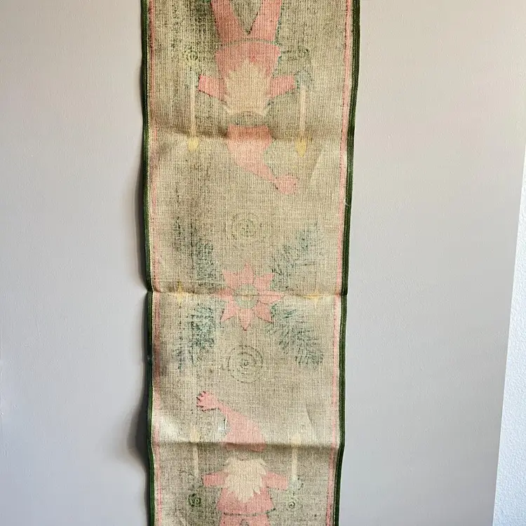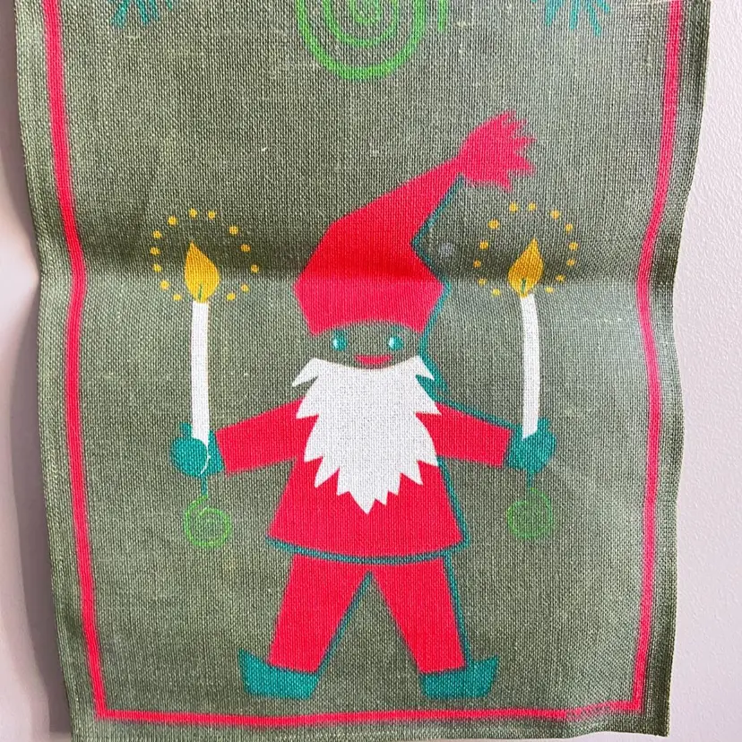 Vintage Scandanavian Christmas Runner Jute Burlap Santa Gnome candles