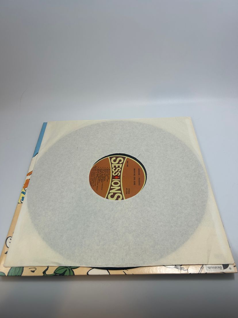 Cover has common wear mostly around edges and corners with creases mostly along edges. One small tear on right edge and creasing on right top corner. Inside paper sleeve has tear in middle.