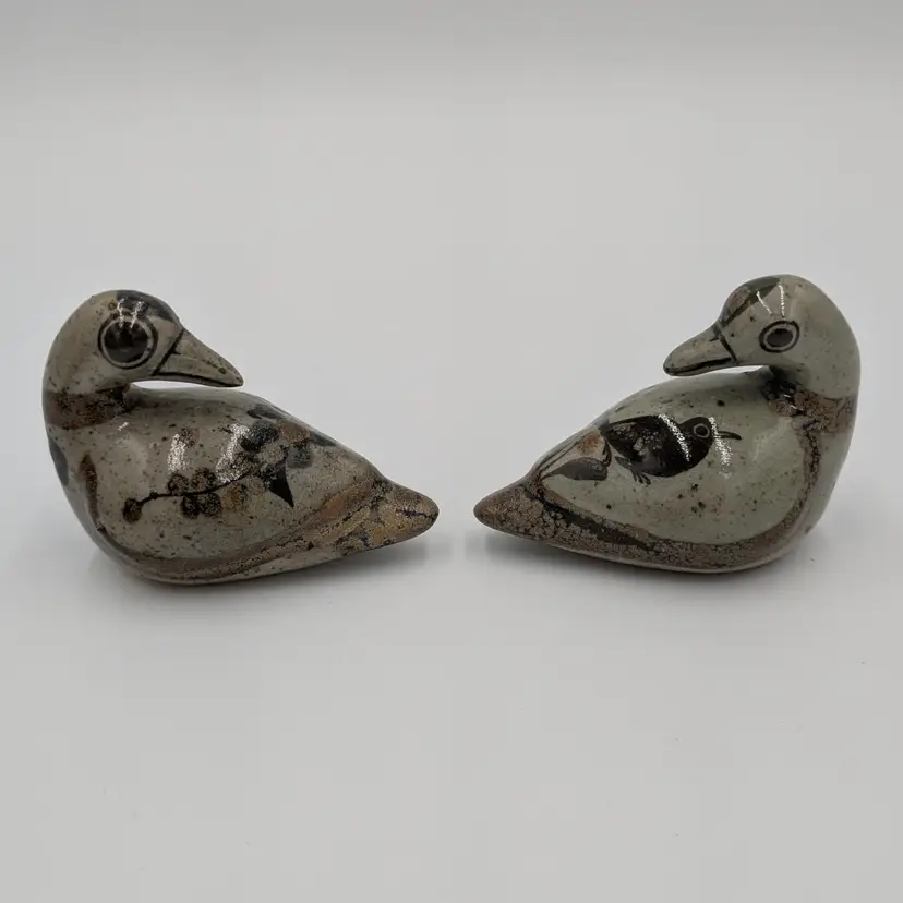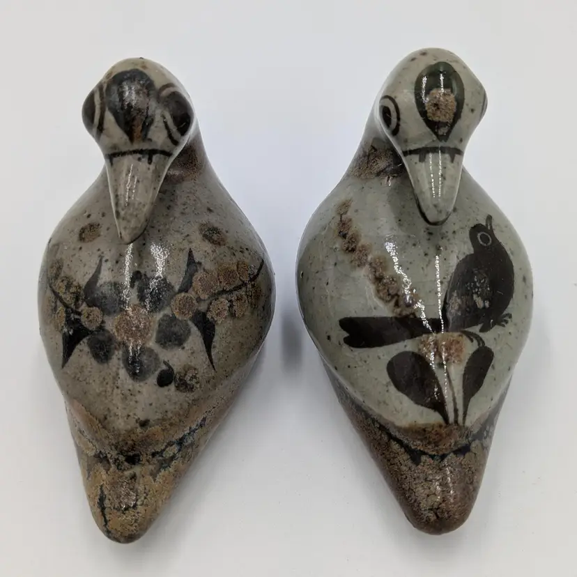 Adorable. These are a little different than the usual birds I have seen, as their heads are turned. No chips, cracks, breaks or repairs. Shipped with USPS Ground Advantage Mail.