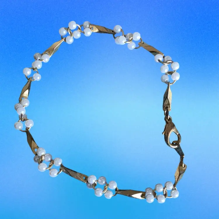 Vintage Shiny Gold Tone Dainty Faux Pearls Cluster Bracelet 7”